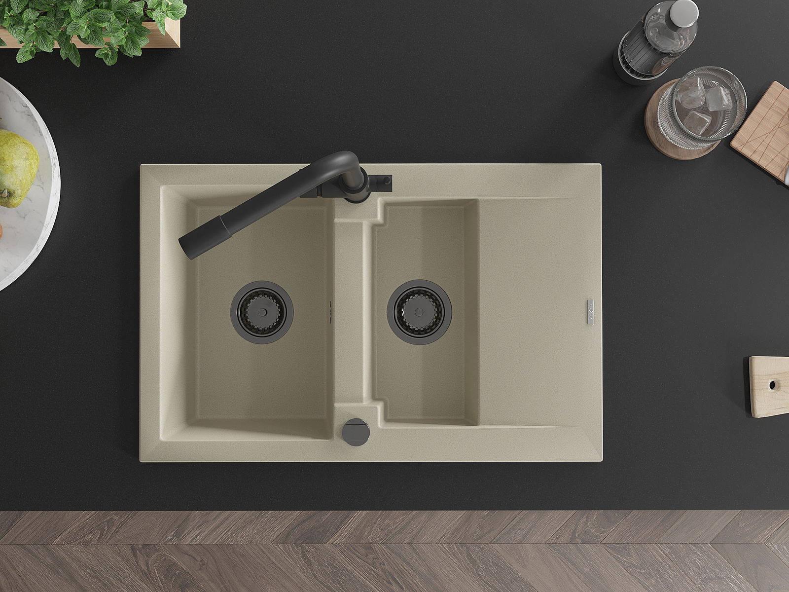 Мивката е направена от висококачествен гранит. Това е елегантно и най -вече практично допълнение към всяка кухня, независимо от нейния стил. Висококачествената и гранитна издръжливост осигуряват много години употреба.