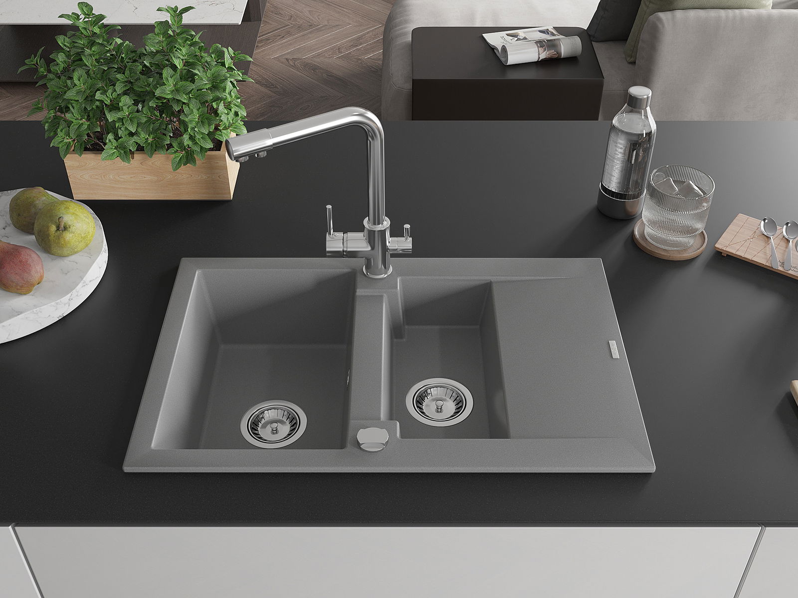 Мивката е направена от висококачествен гранит. Това е елегантно и най -вече практично допълнение към всяка кухня, независимо от нейния стил. Висококачествената и гранитна издръжливост осигуряват много години употреба.