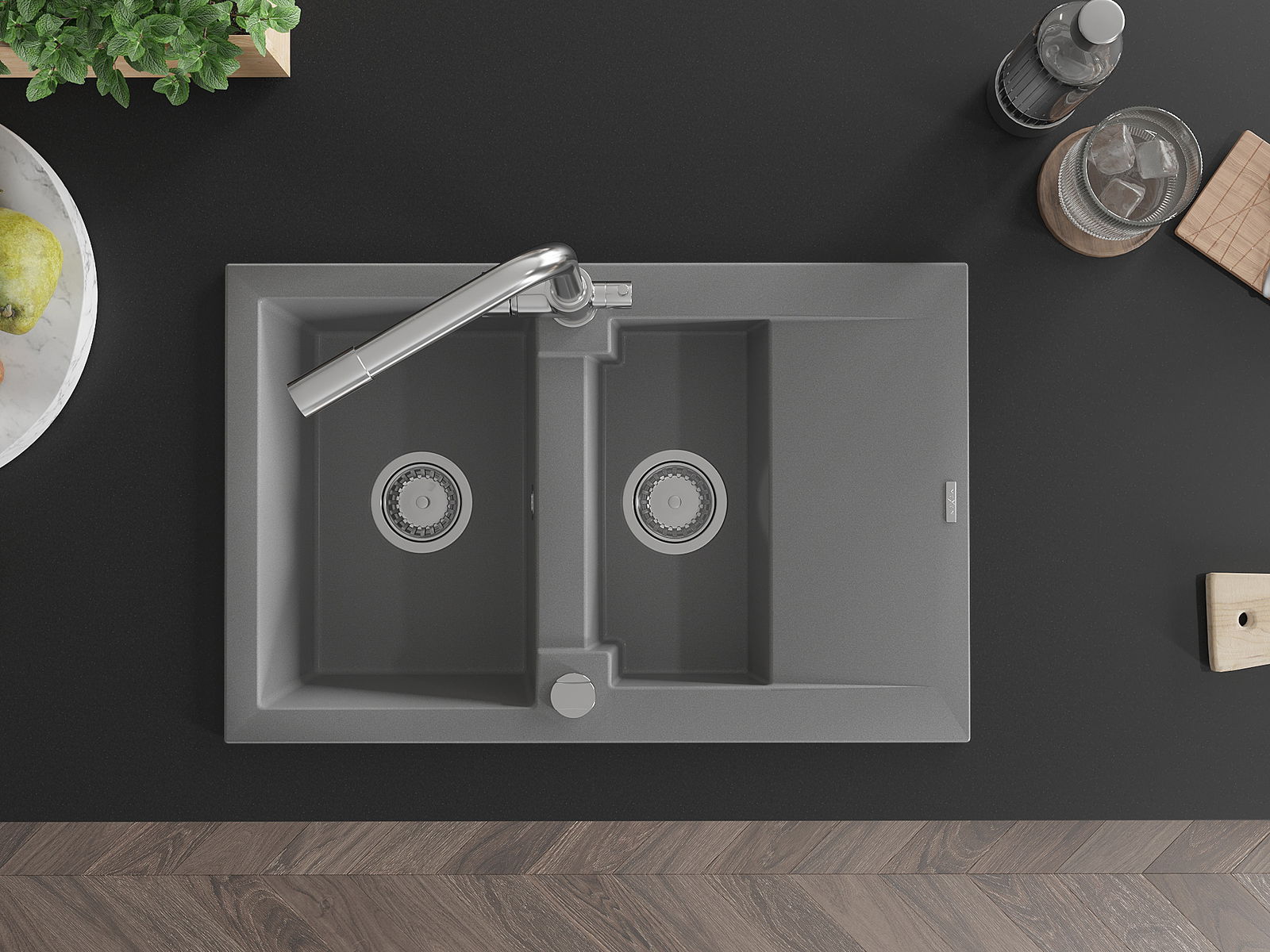 Mexen Gaspar мивка от гранит с 1,5 камери с отцедник и кухненски смесител Duero, сив - 6507-71-671600-00