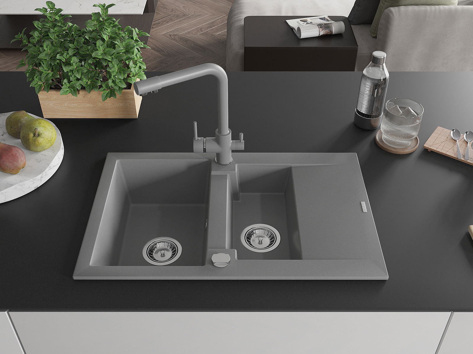 Мивката е направена от висококачествен гранит. Това е елегантно и най -вече практично допълнение към всяка кухня, независимо от нейния стил. Висококачествената и гранитна издръжливост осигуряват много години употреба.