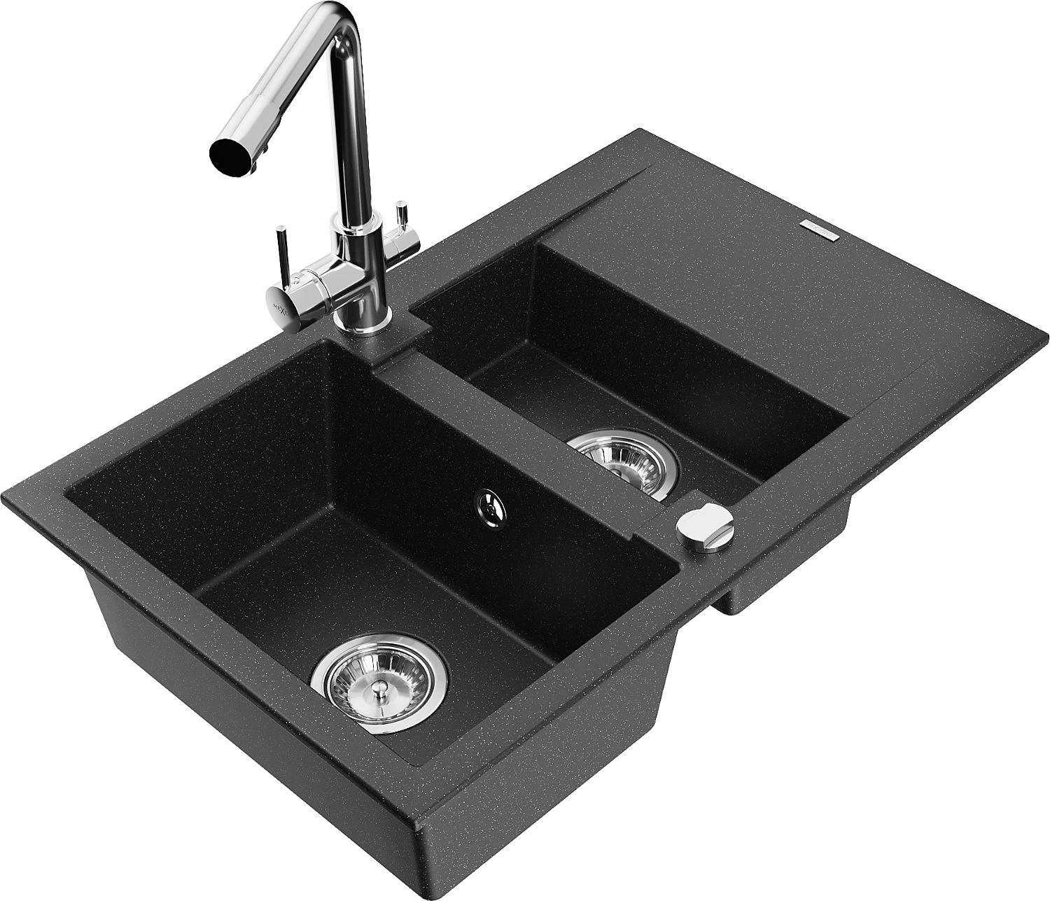 Mexen Gaspar гранитна мивка с 1,5 камери и отцедник и кухненски смесител Duero, черен/сребрист - 6507-73-671600-00