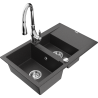 Mexen Gaspar гранитна мивка с 1,5 камери и отцедник и кухненски смесител Savita, сива - 6507-71-672601-71