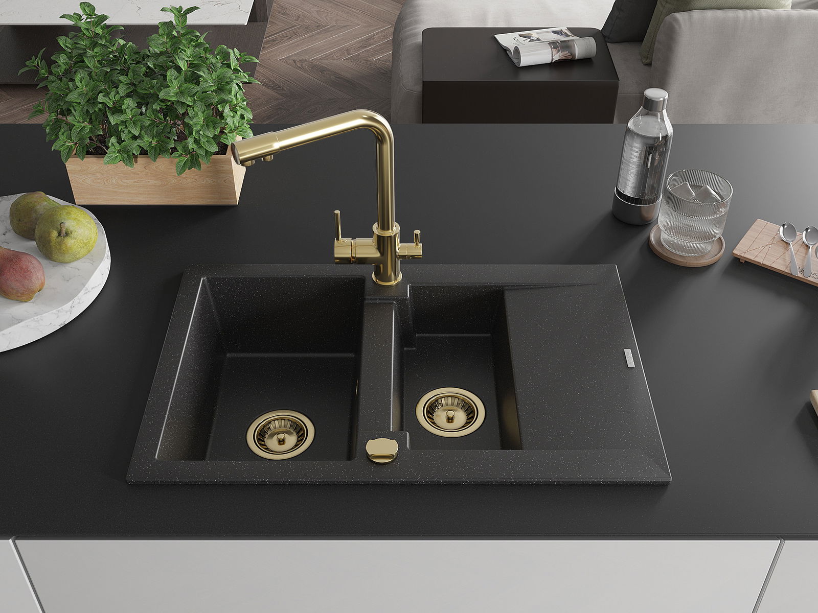 Мивката е направена от висококачествен гранит. Това е елегантно и най -вече практично допълнение към всяка кухня, независимо от нейния стил. Висококачествената и гранитна издръжливост осигуряват много години употреба.