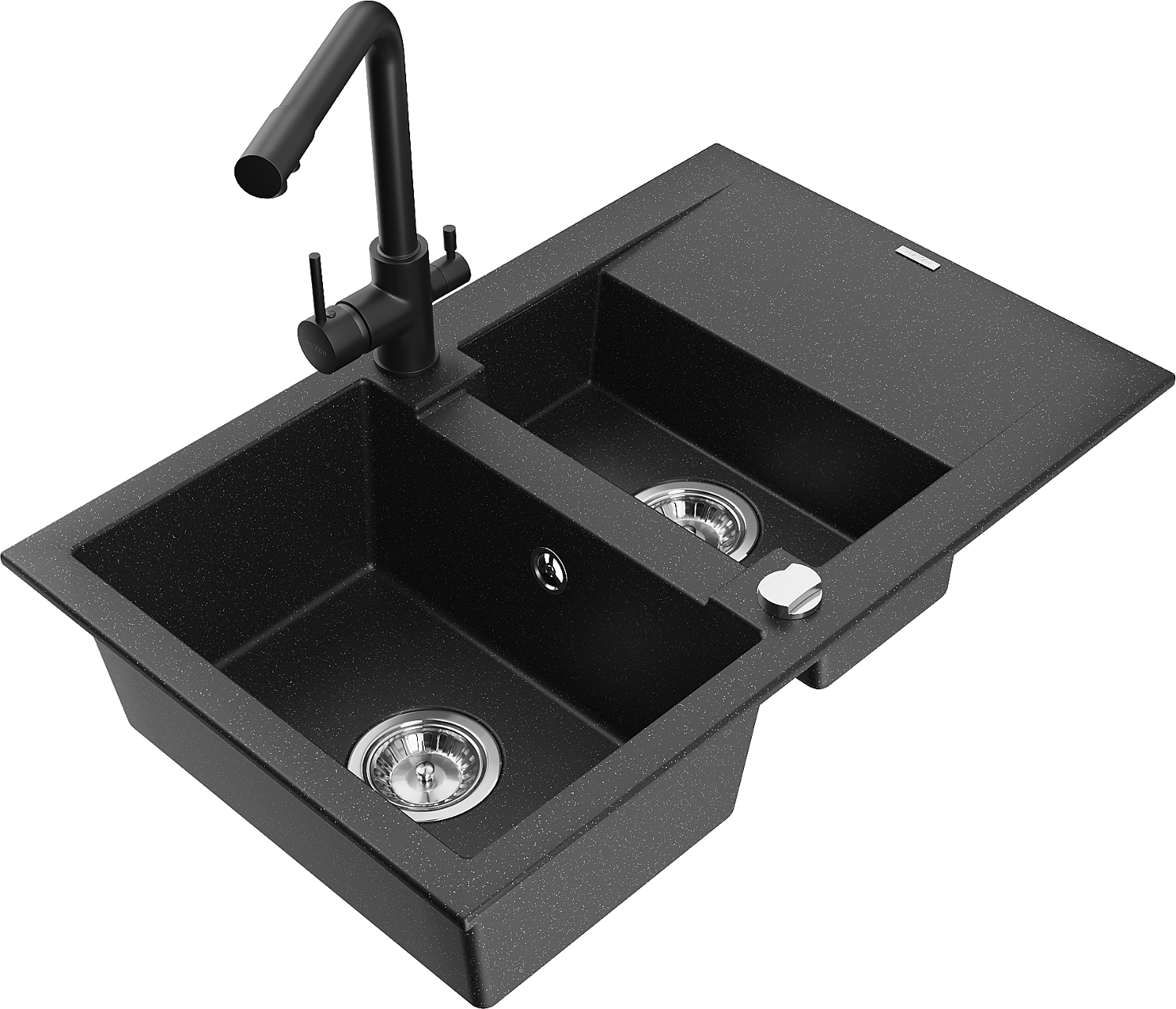 Мивката е направена от висококачествен гранит. Това е елегантно и най -вече практично допълнение към всяка кухня, независимо от нейния стил. Висококачествената и гранитна издръжливост осигуряват много години употреба.