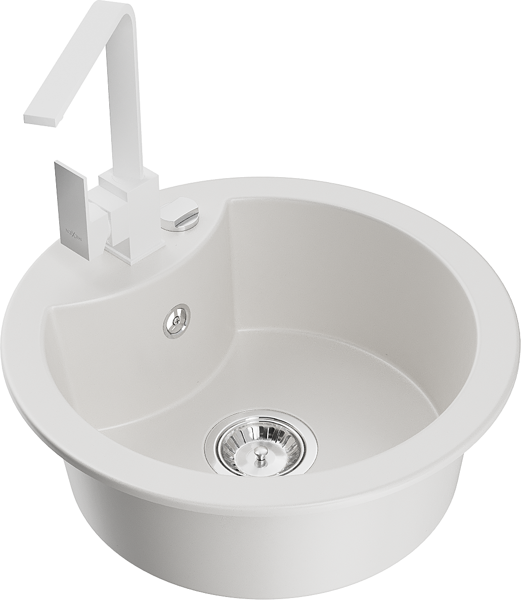 Mexen Diego мивка от гранит с 1 отделение и кухненски смесител Rita, бял - 6512-20-670300-20
