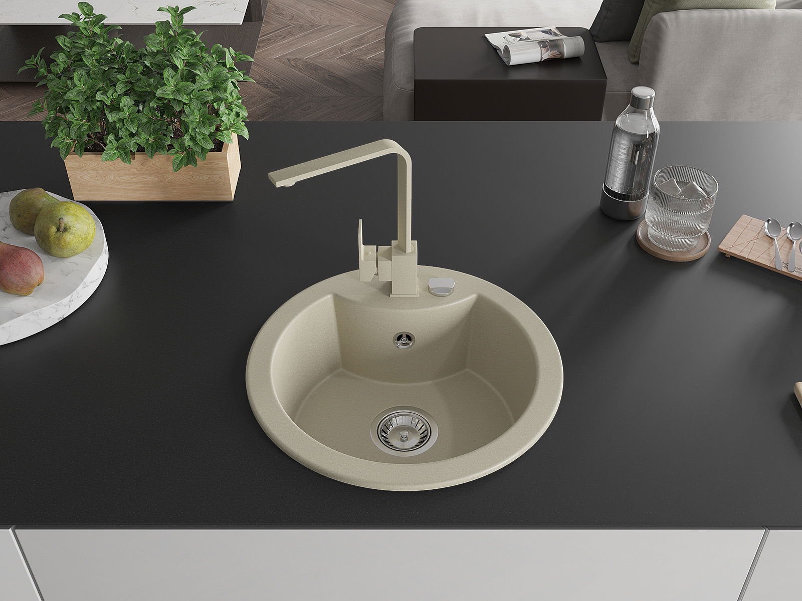 Мивката е направена от висококачествен гранит. Това е елегантно и най -вече практично допълнение към всяка кухня, независимо от нейния стил. Висококачествената и гранитна издръжливост осигуряват много години употреба.