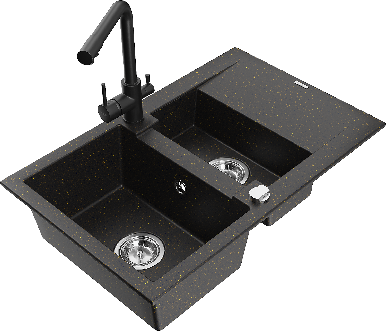 Mexen Gaspar гранитна мивка с 1,5 камери, с отцедник и кухненски смесител Duero,
