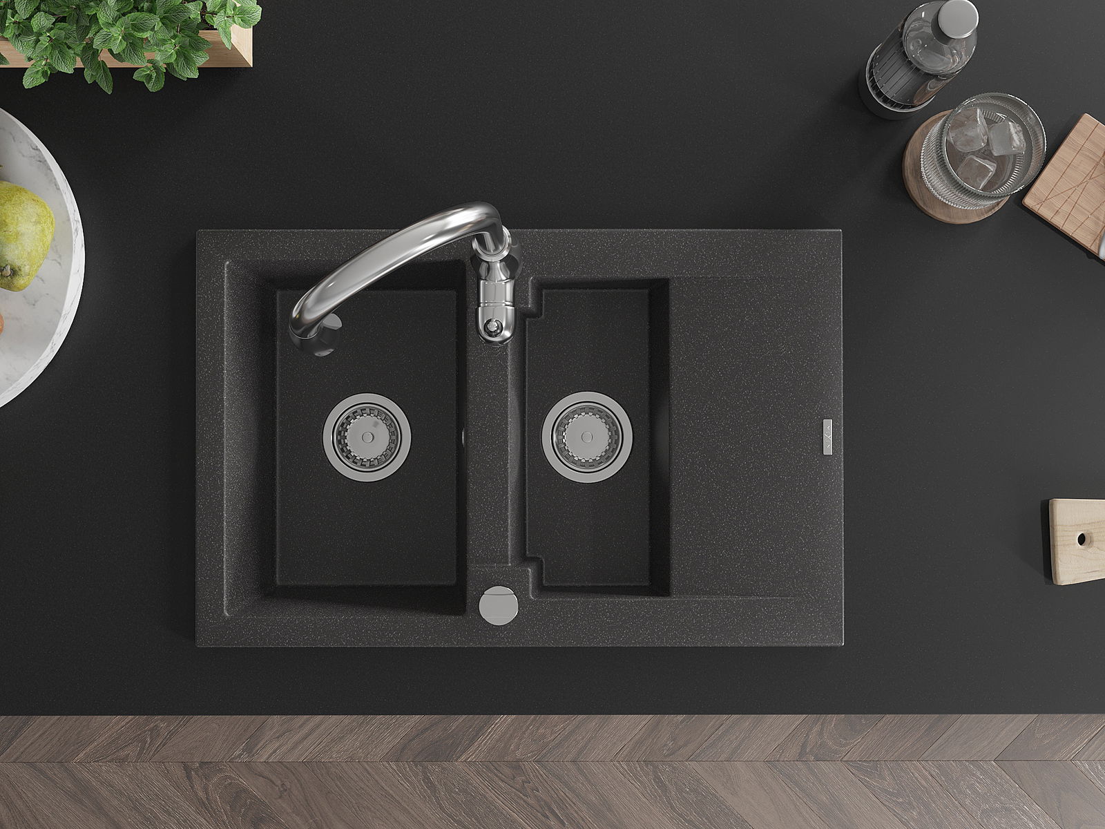 Мивката е направена от висококачествен гранит. Това е елегантно и най -вече практично допълнение към всяка кухня, независимо от нейния стил. Висококачествената и гранитна издръжливост осигуряват много години употреба.