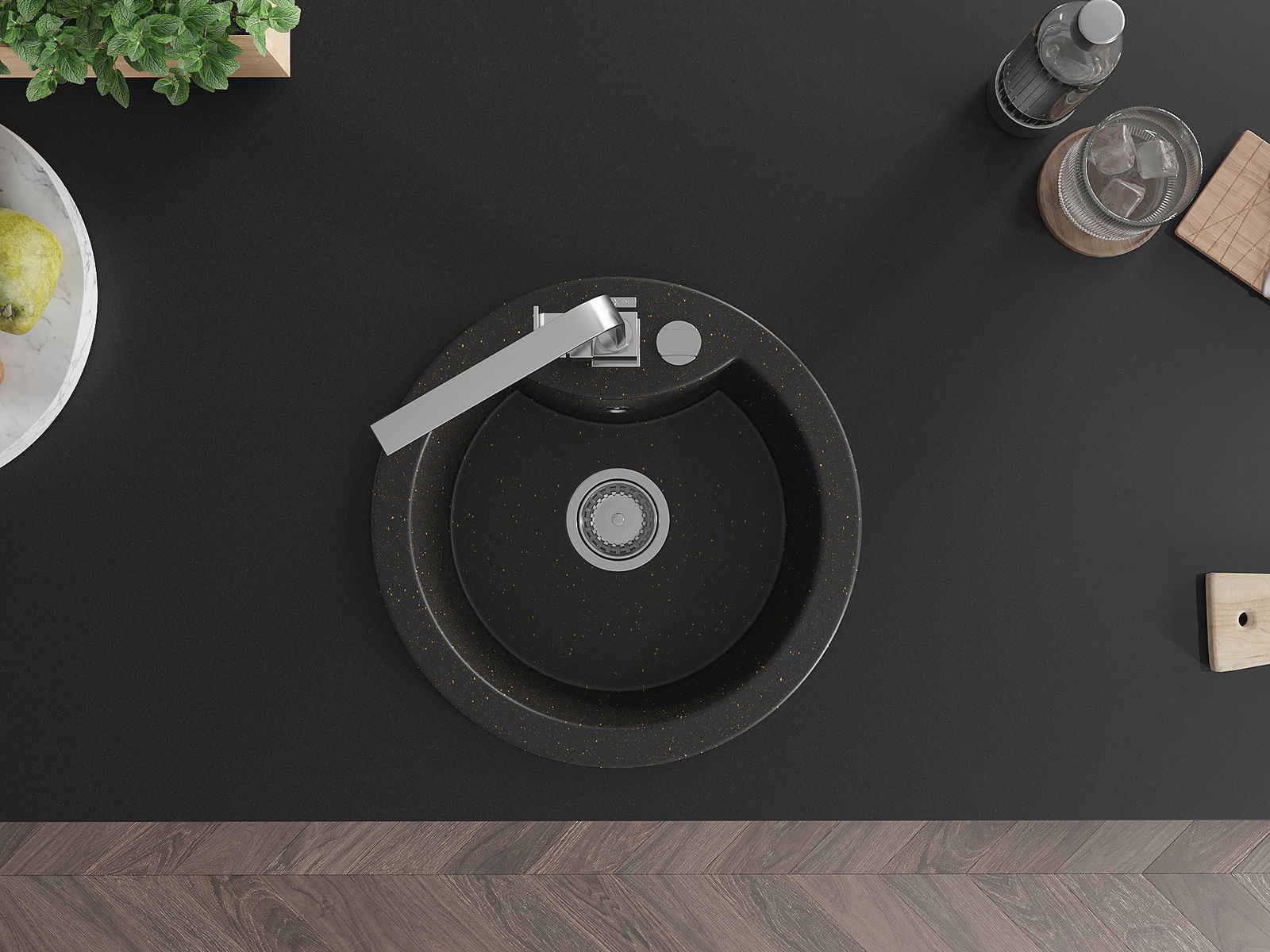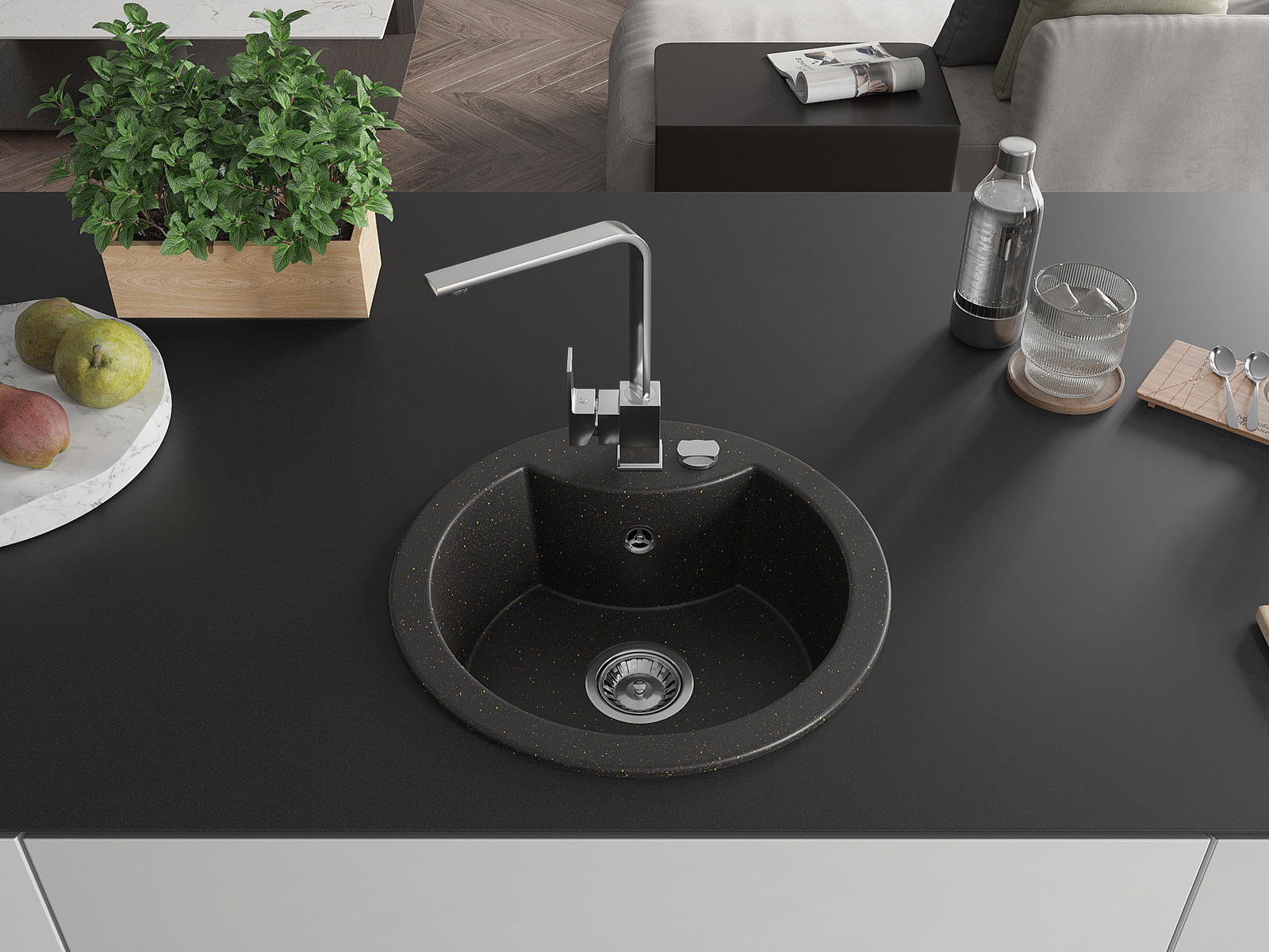 Мивката е направена от висококачествен гранит. Това е елегантно и най -вече практично допълнение към всяка кухня, независимо от нейния стил. Висококачествената и гранитна издръжливост осигуряват много години употреба.