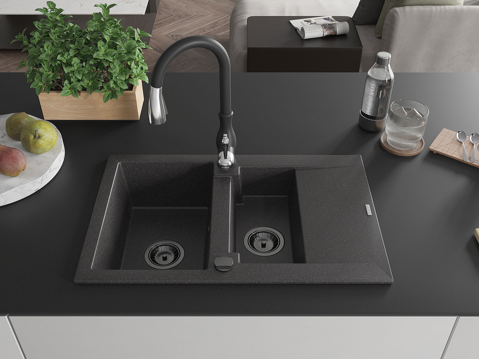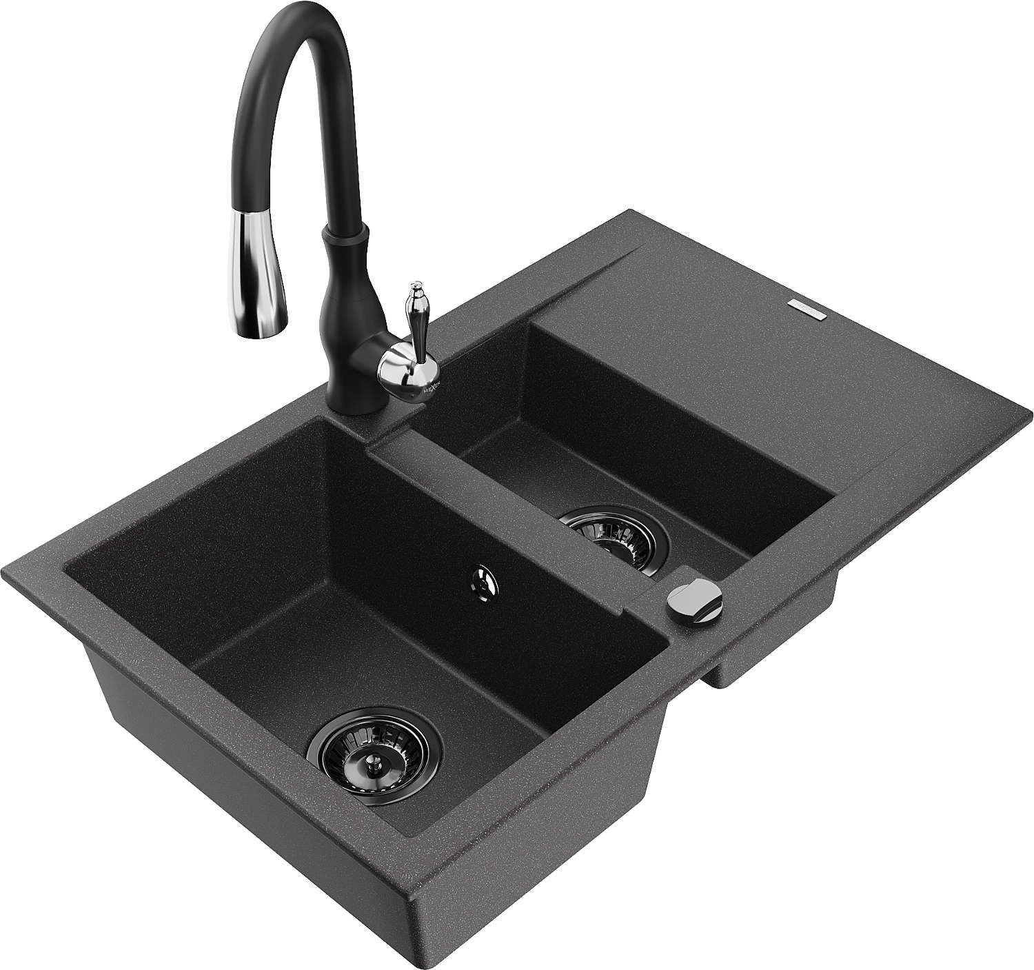 Mexen Gaspar гранитна мивка 1,5 камери с отцедник и кухненски смесител Savita,