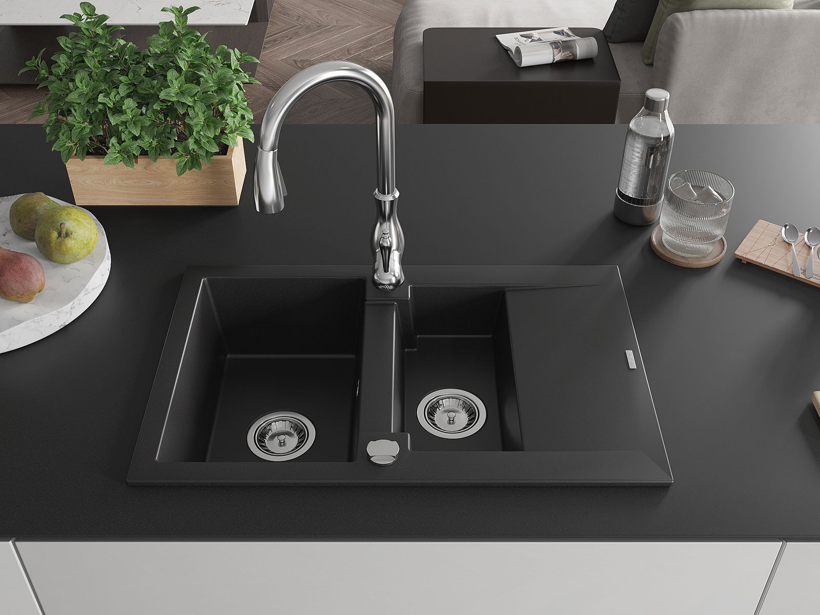Мивката е направена от висококачествен гранит. Това е елегантно и най -вече практично допълнение към всяка кухня, независимо от нейния стил. Висококачествената и гранитна издръжливост осигуряват много години употреба.