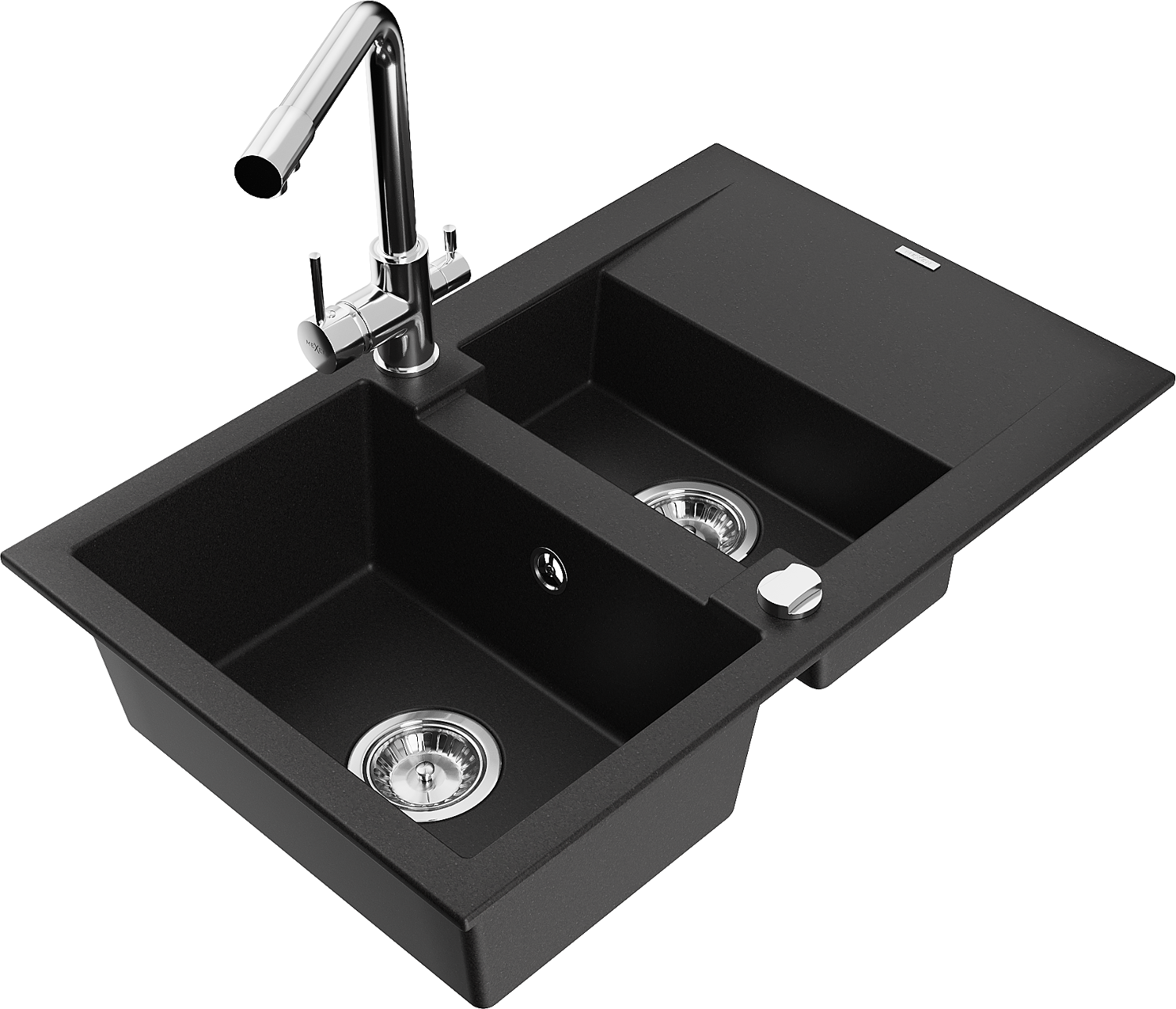 Mexen Gaspar мивка гранитна 1,5-коморна с отцедник и кухненски смесител Duero, черна - 6507-77-671600-00