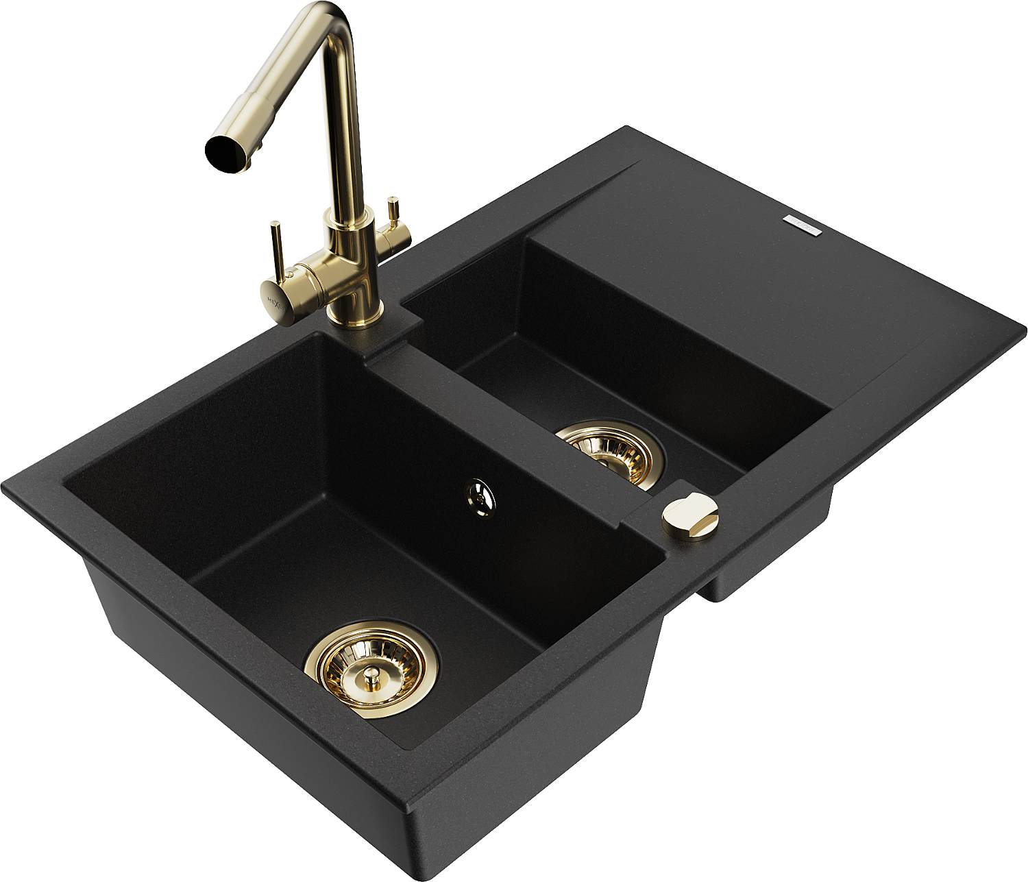 Mexen Gaspar гранитна мивка 1,5-камерна с отцедник и кухненски смесител Duero,