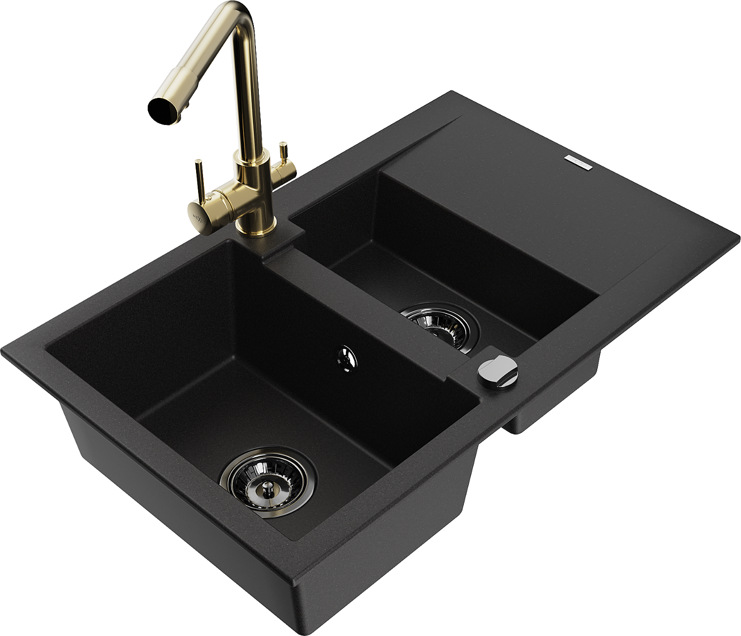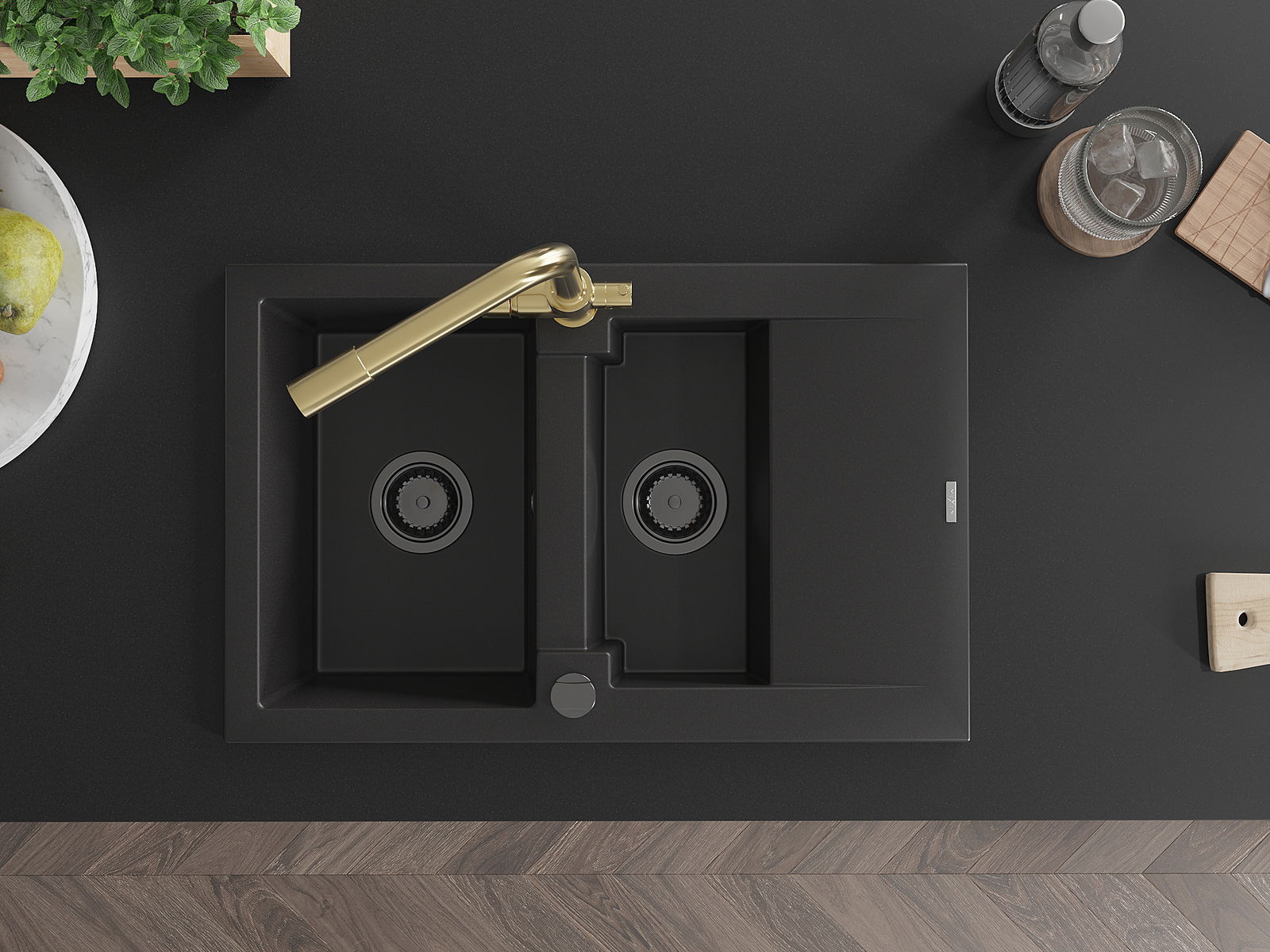 Mexen Gaspar гранитна мивка с 1,5 камери с отцедник и кухненски смесител Duero, черен - 6507-77-671600-50-B