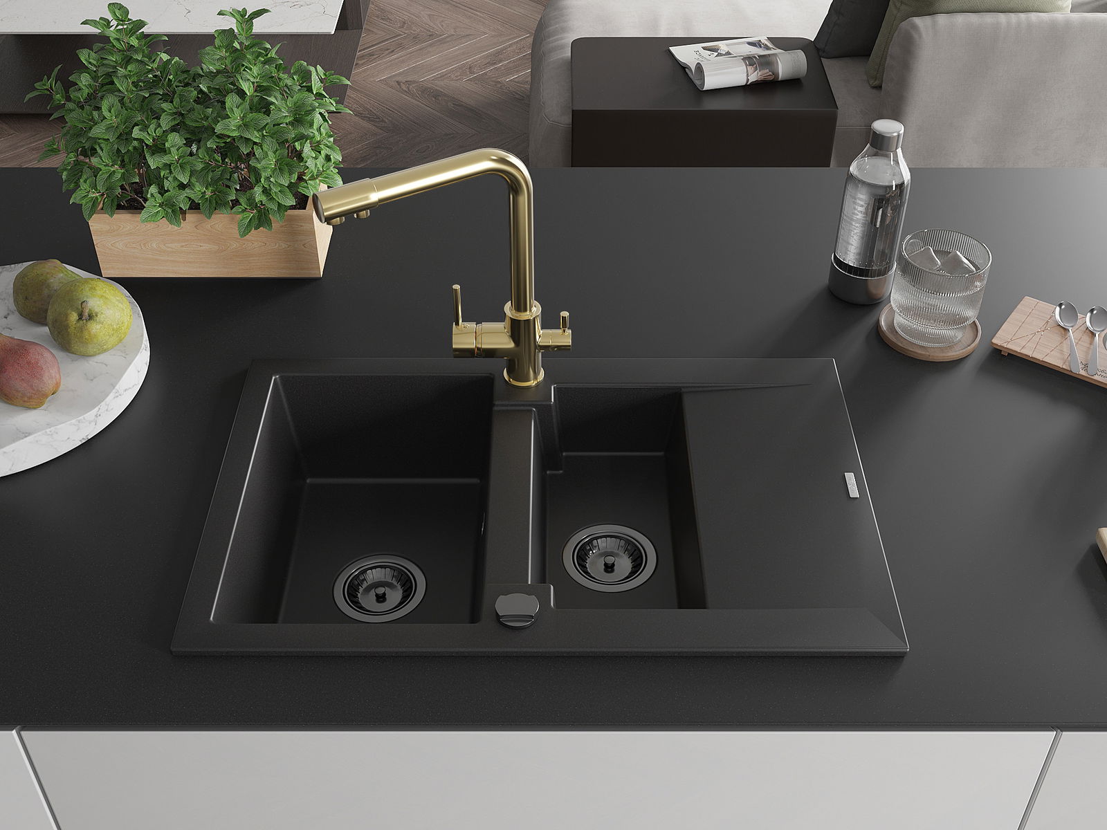 Мивката е направена от висококачествен гранит. Това е елегантно и най -вече практично допълнение към всяка кухня, независимо от нейния стил. Висококачествената и гранитна издръжливост осигуряват много години употреба.