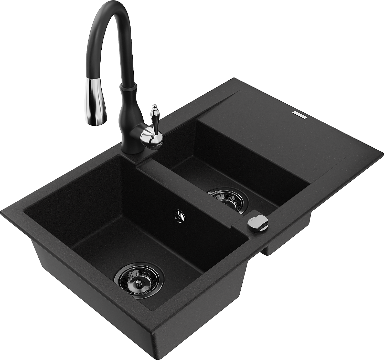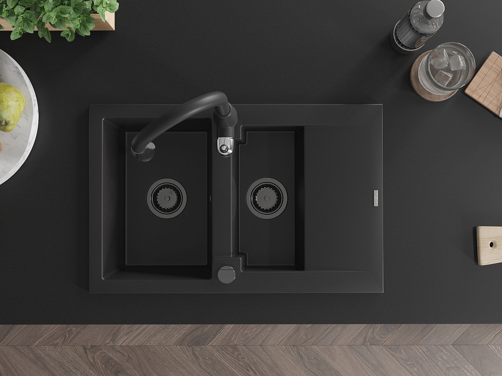 Mexen Gaspar гранитна мивка 1,5-коморна с отцедник и кухненски смесител Savita, черен - 6507-77-672601-70-B
