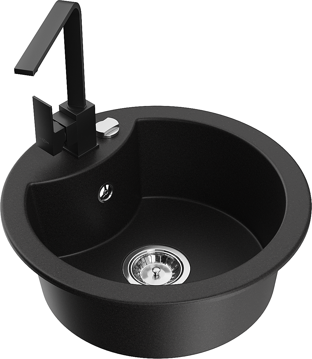 Mexen Diego еднокамерна гранитна мивка с кухненски смесител Rita, черен - 6512-77-670300-70