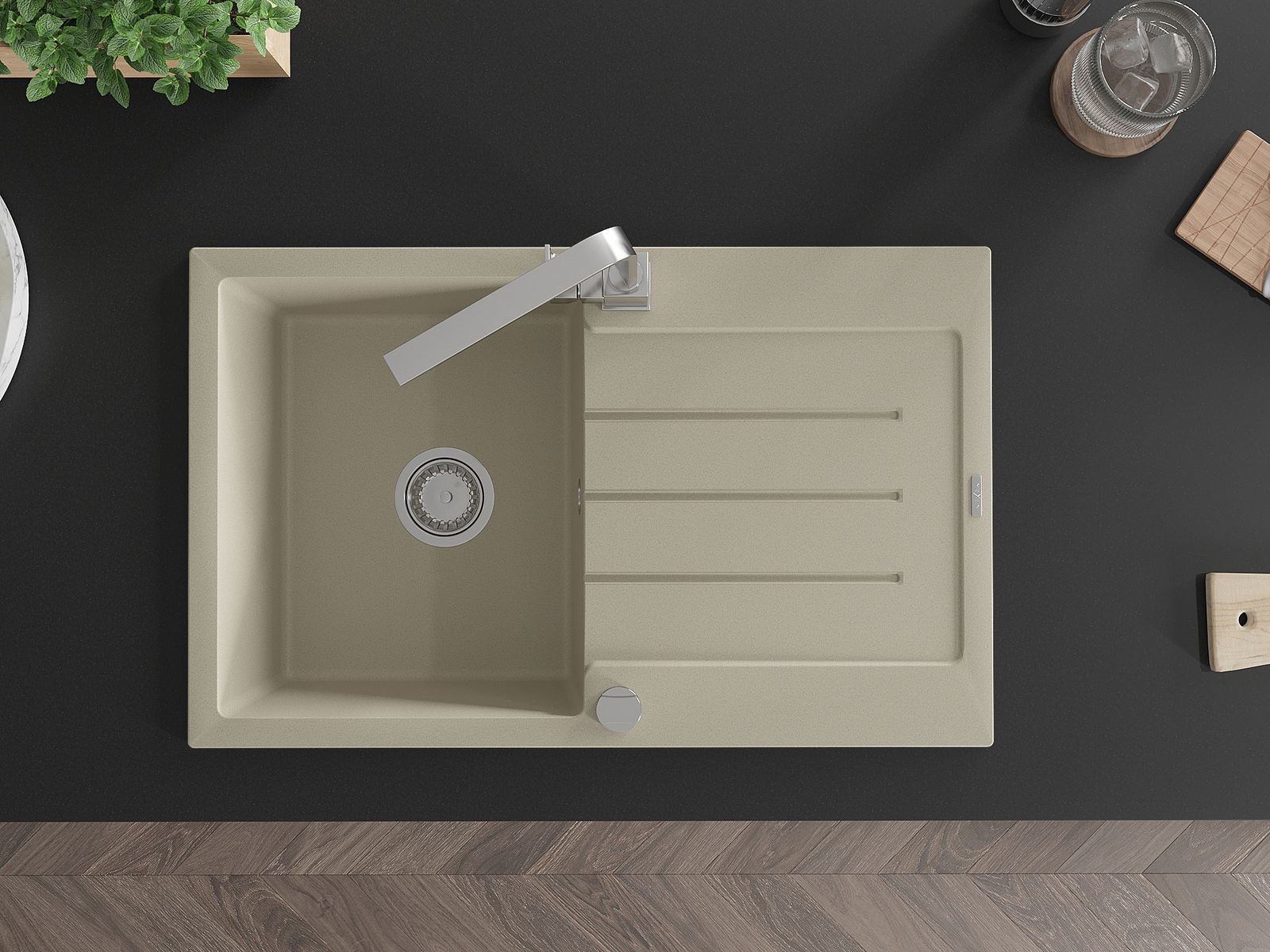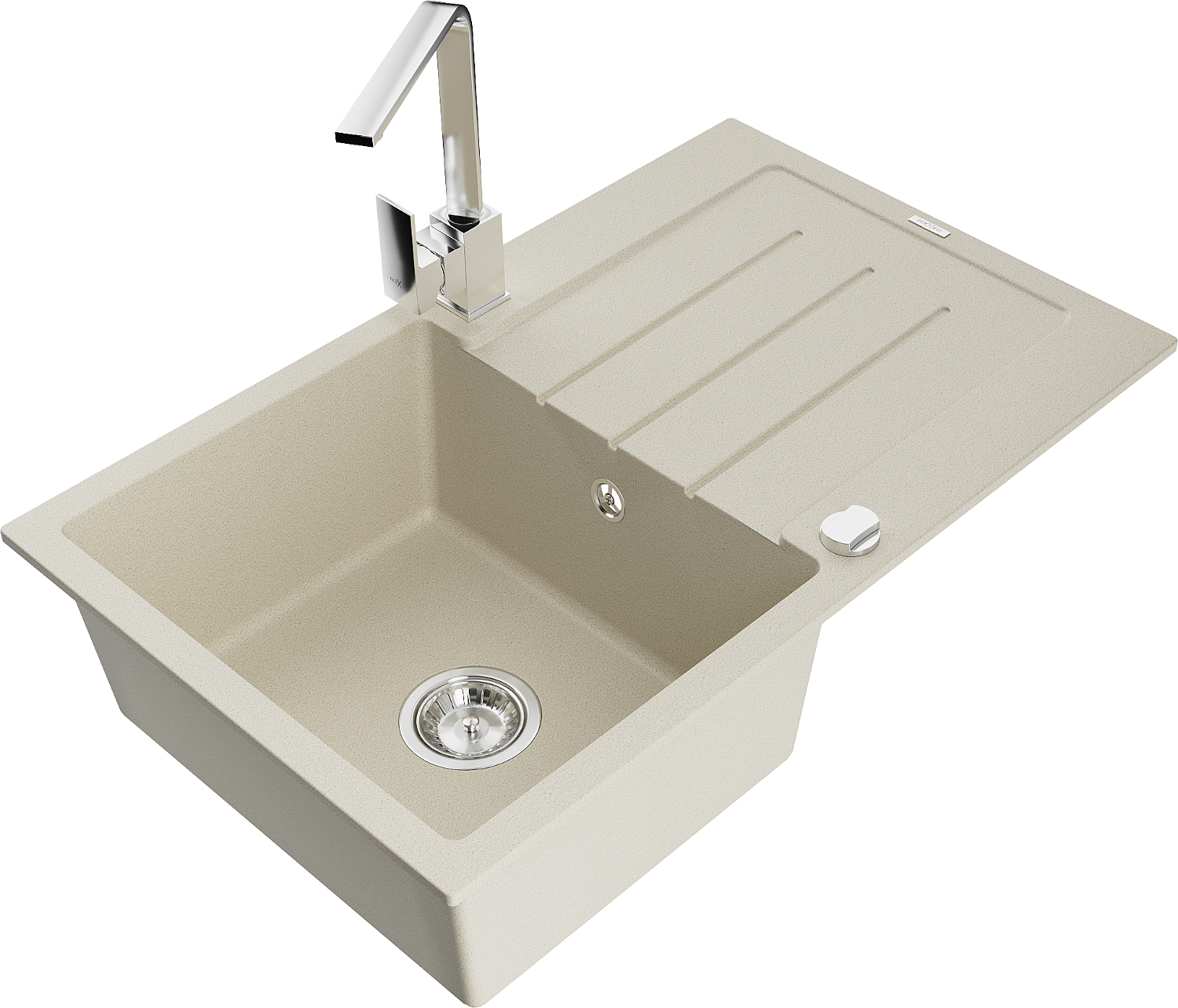 Mexen Bruno гранитна мивка с 1 корито с отцедник и кухненски смесител Rita, бежов - 6513-69-670300-00