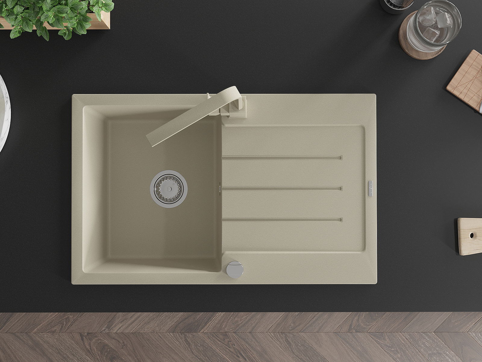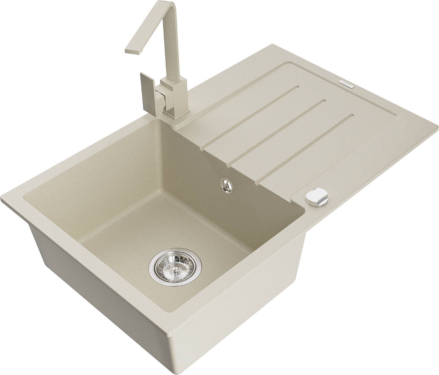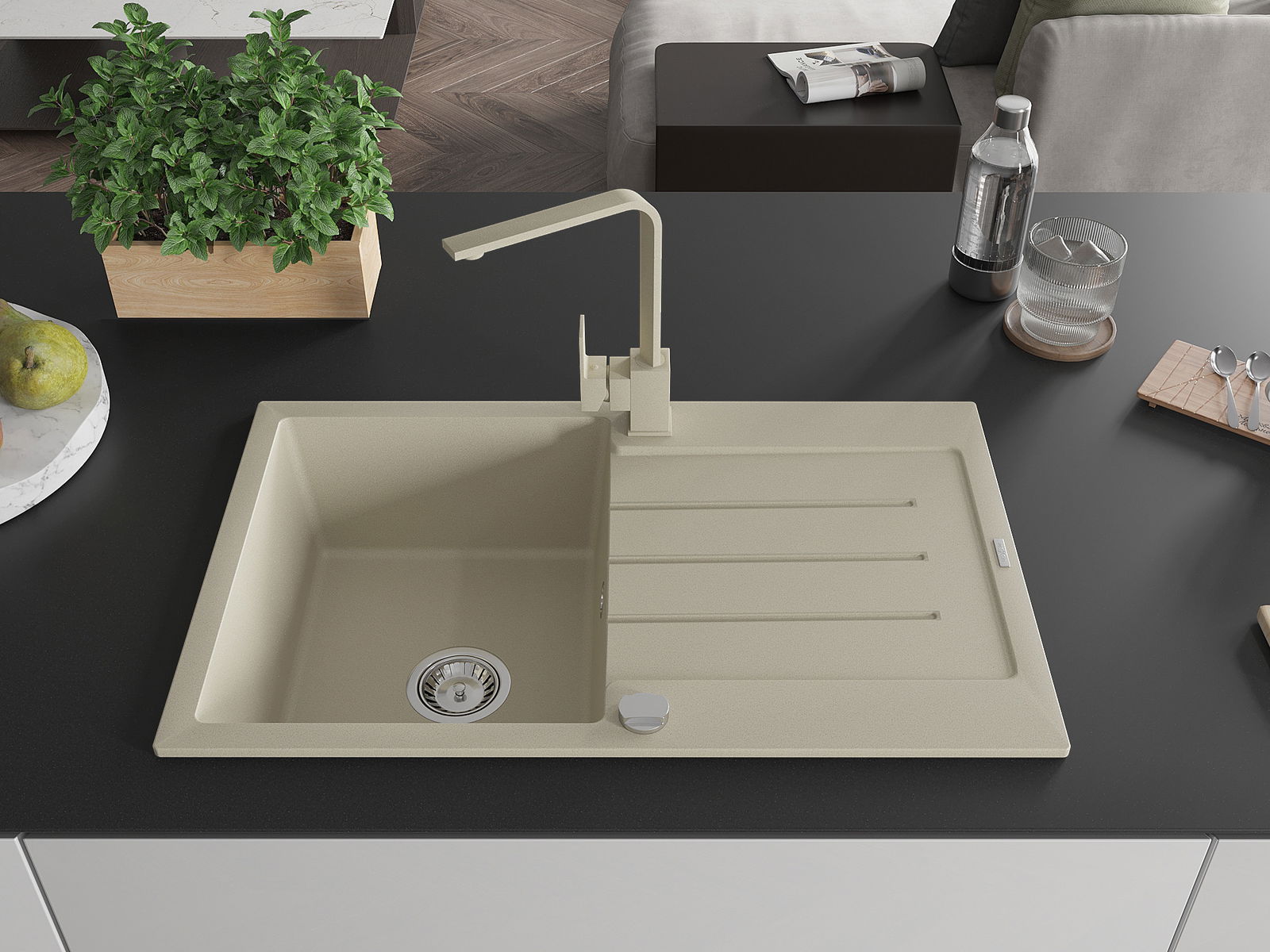 Mexen Bruno гранитна кухненска мивка с 1 корито с отцедник и кухненски смесител Rita, бежов - 6513-69-670300-69