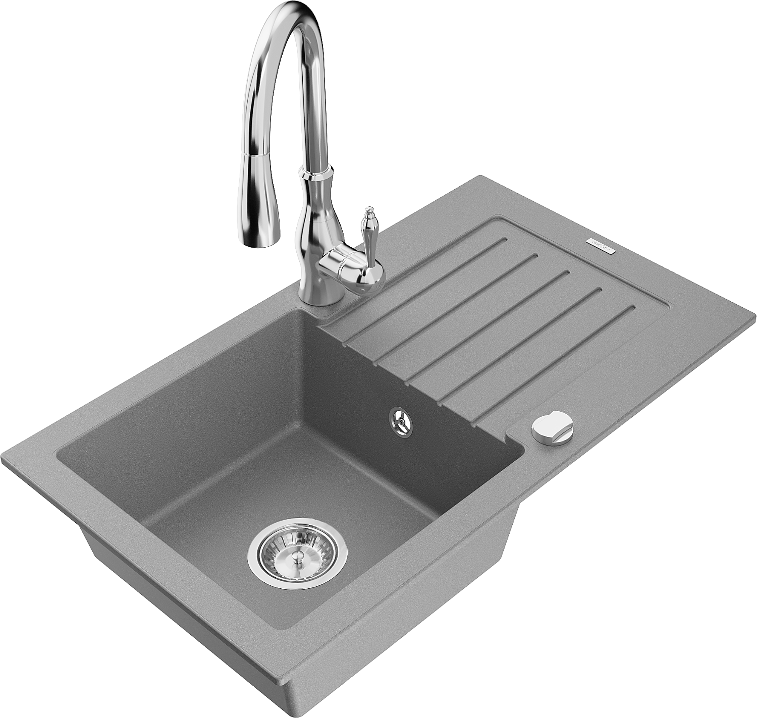 Mexen Pablo гранитна мивка 1-камера с отцедник и кухненски кран Savita, сив - 6510-71-672601-00