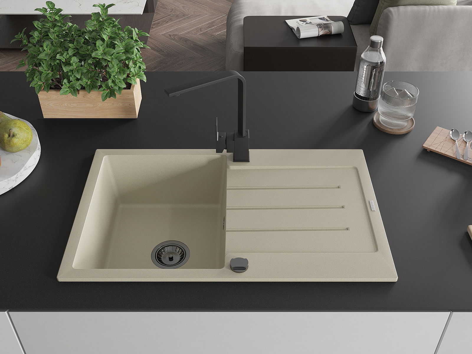 Мивката е направена от висококачествен гранит. Това е елегантно и най -вече практично допълнение към всяка кухня, независимо от нейния стил. Висококачествената и гранитна издръжливост осигуряват много години употреба.