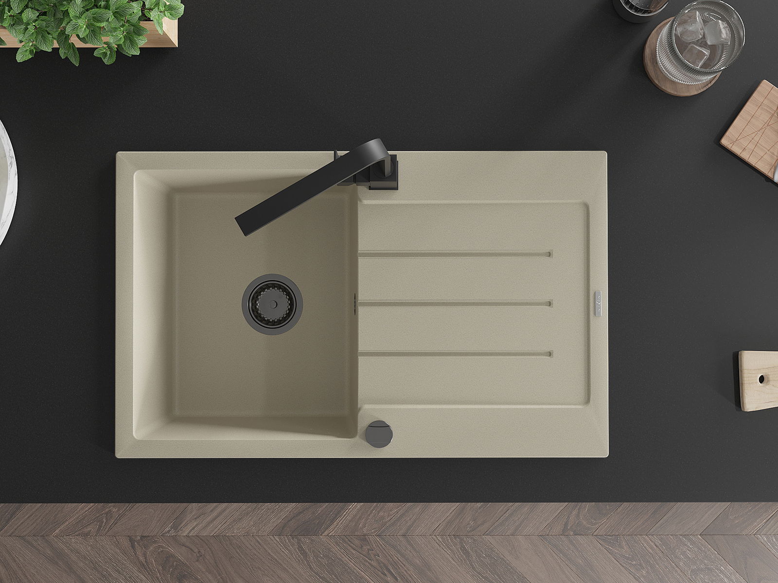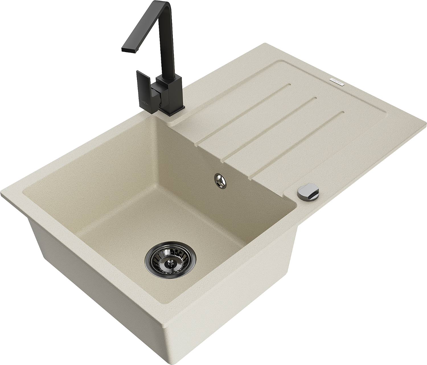 Mexen Bruno гранитна мивка с 1 корито и отцедник и кухненски смесител Rita, бежов - 6513-69-670300-70