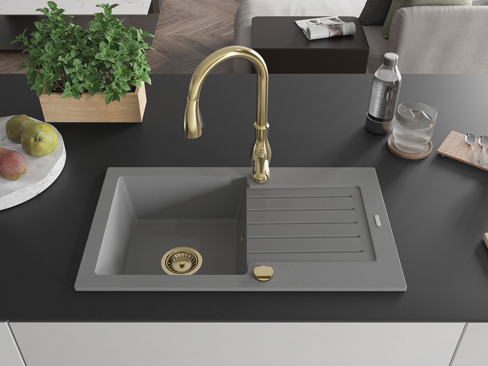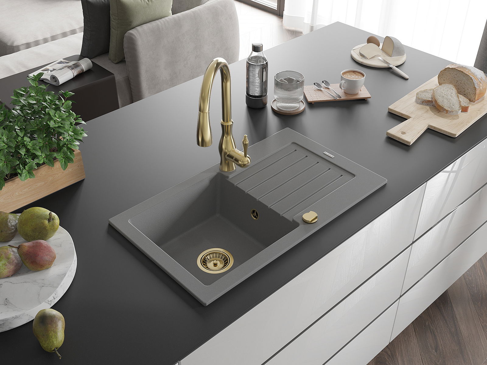 Мивката е направена от висококачествен гранит. Това е елегантно и най -вече практично допълнение към всяка кухня, независимо от нейния стил. Висококачествената и гранитна издръжливост осигуряват много години употреба.