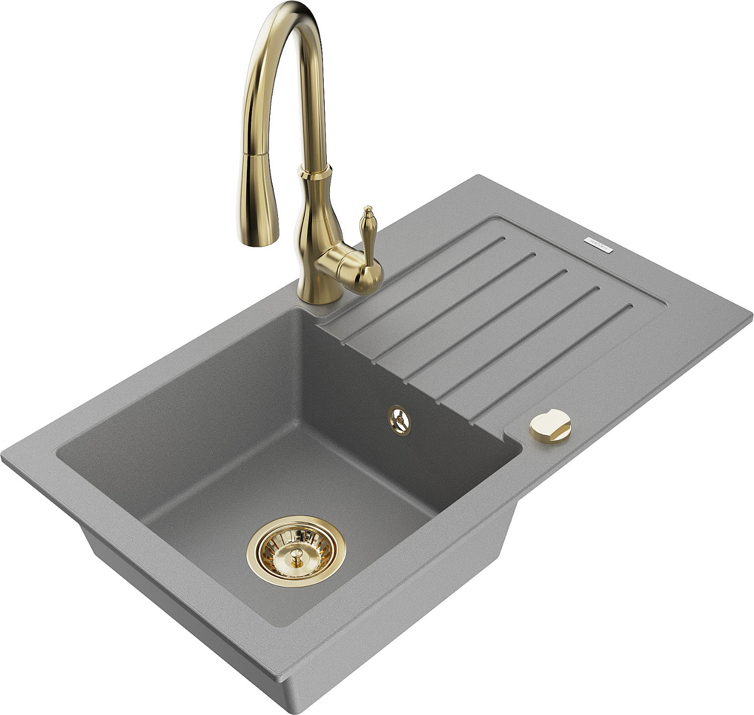 Mexen Pablo гранитна мивка с 1 отделение с отцедник и кухненски смесител Savita, сива - 6510-71-672601-50