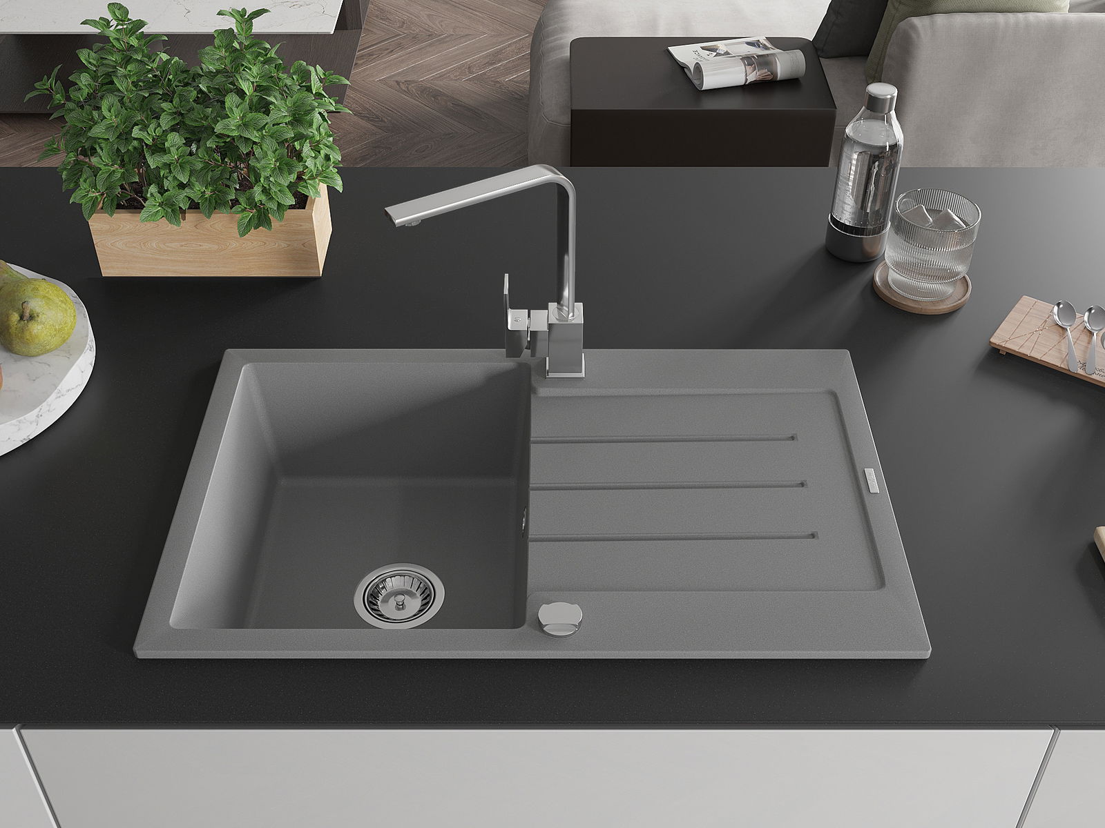 Мивката е направена от висококачествен гранит. Това е елегантно и най -вече практично допълнение към всяка кухня, независимо от нейния стил. Висококачествената и гранитна издръжливост осигуряват много години употреба.