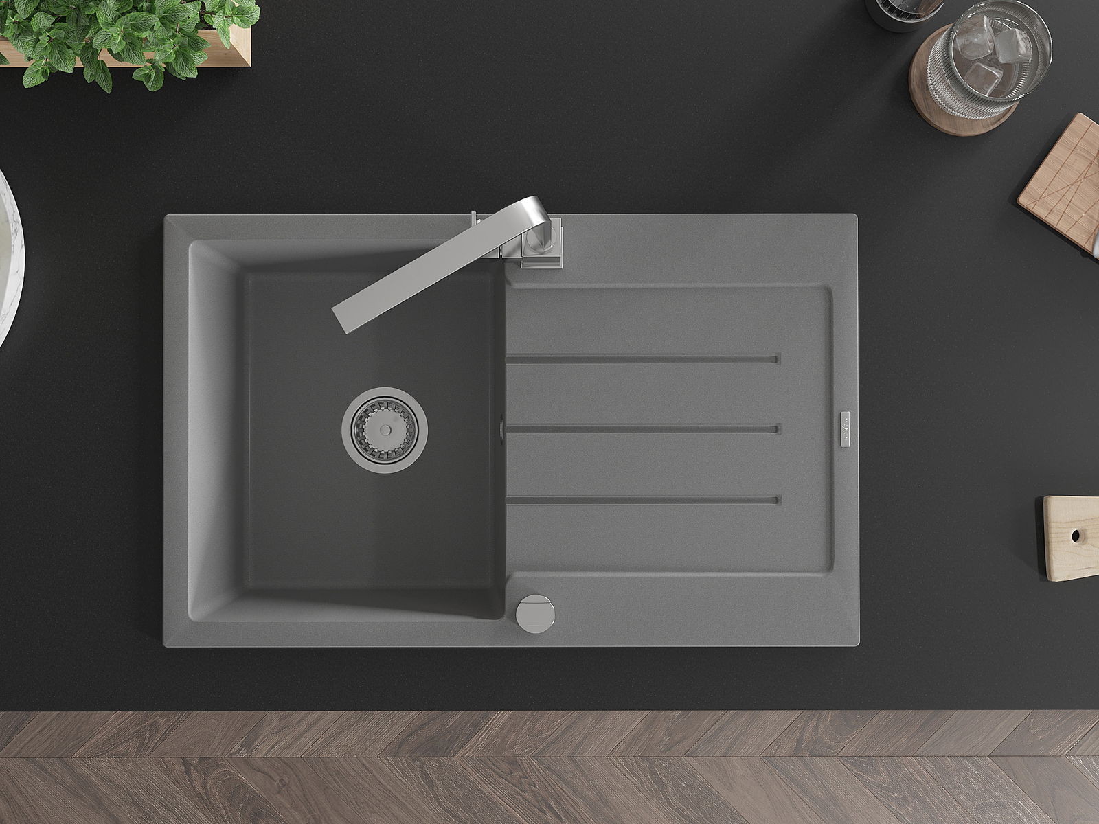 Mexen Bruno гранитна мивка с една камера с отцедник и кухненски смесител Rita, сива - 6513-71-670300-00