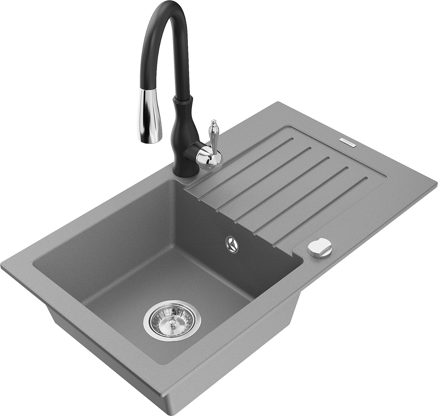 Mexen Pablo еднокоморов гранитен мивка с отцедник и кухненски смесител Savita, сив - 6510-71-672601-70