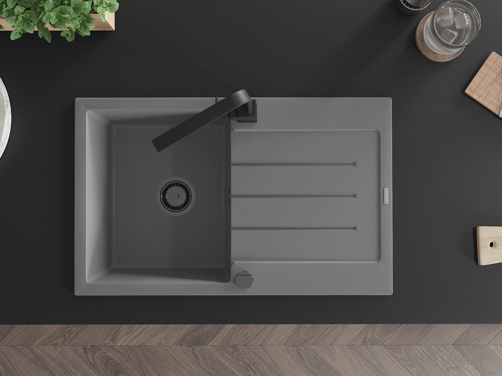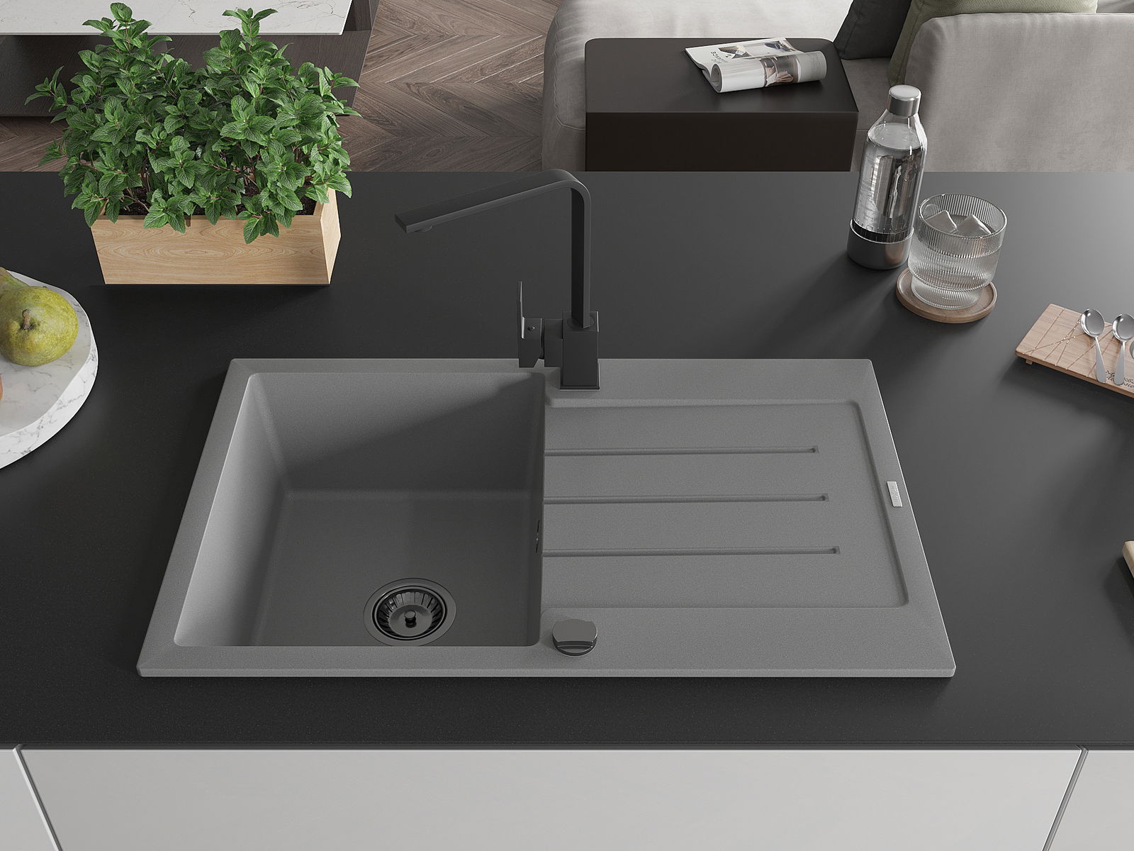 Мивката е направена от висококачествен гранит. Това е елегантно и най -вече практично допълнение към всяка кухня, независимо от нейния стил. Висококачествената и гранитна издръжливост осигуряват много години употреба.