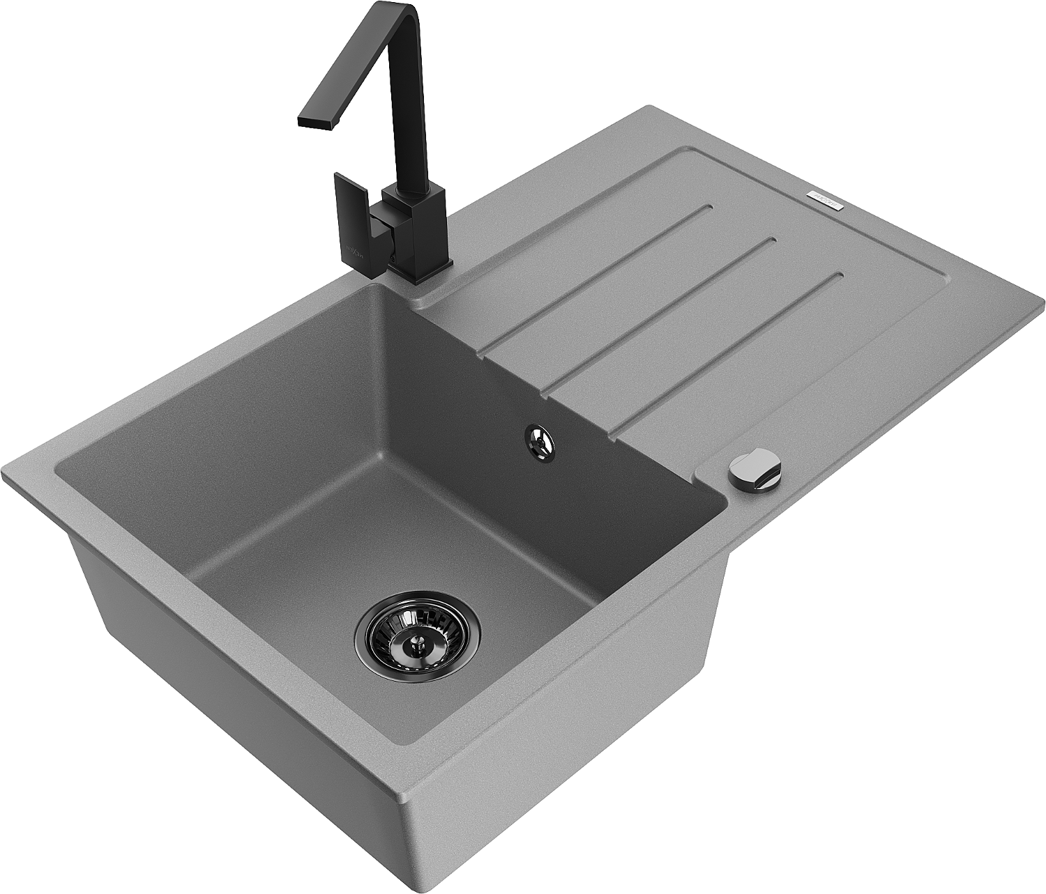 Mexen Bruno кухненска мивка от гранит с 1 отделение и отцедник и кухненски смесител Rita, сив - 6513-71-670300-70-B
