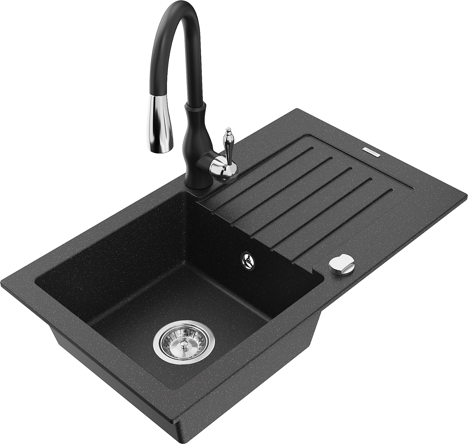 Mexen Pablo гранитна кухненска мивка с една камера с отцедник и смесител