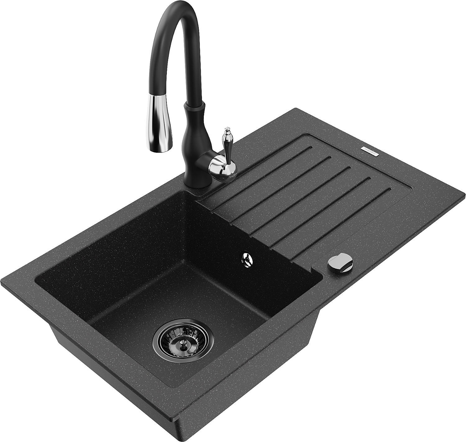 Mexen Pablo гранитна мивка с 1 отделение и отцедник и кухненски смесител Savita, черно/сребристо - 6510-73-672601-70-B