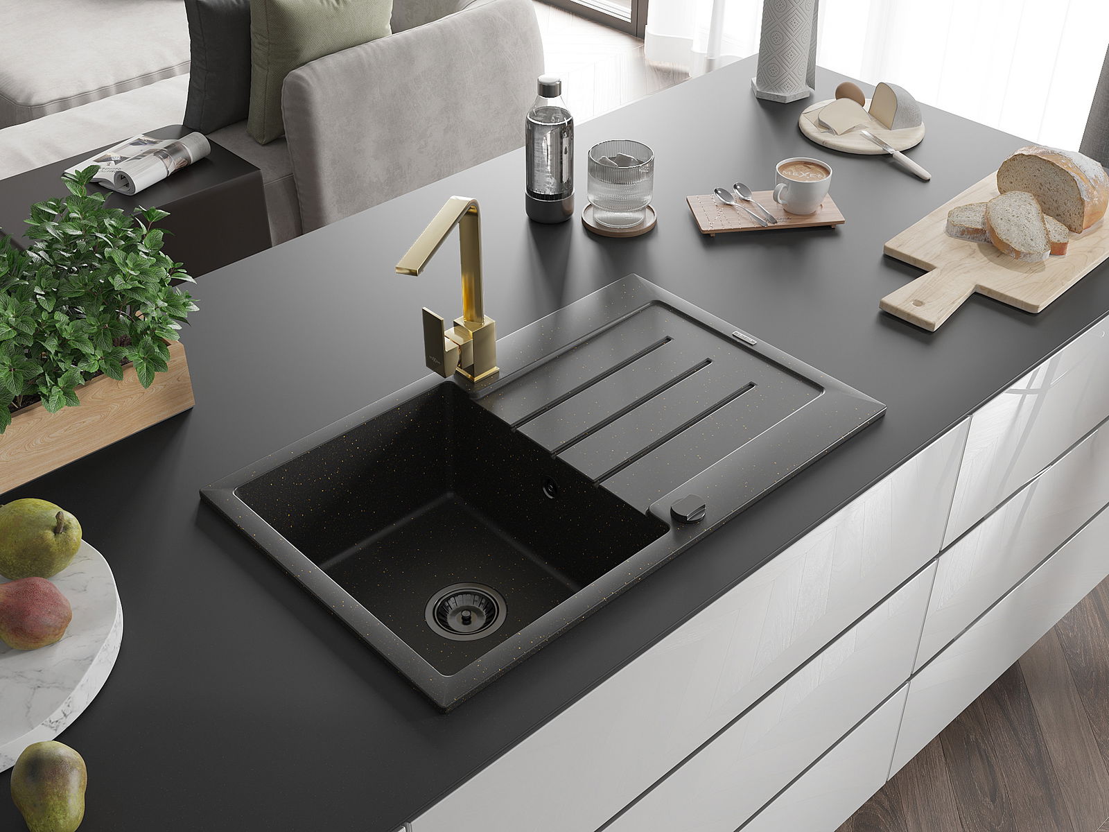 Мивката е направена от висококачествен гранит. Това е елегантно и най -вече практично допълнение към всяка кухня, независимо от нейния стил. Висококачествената и гранитна издръжливост осигуряват много години употреба.
