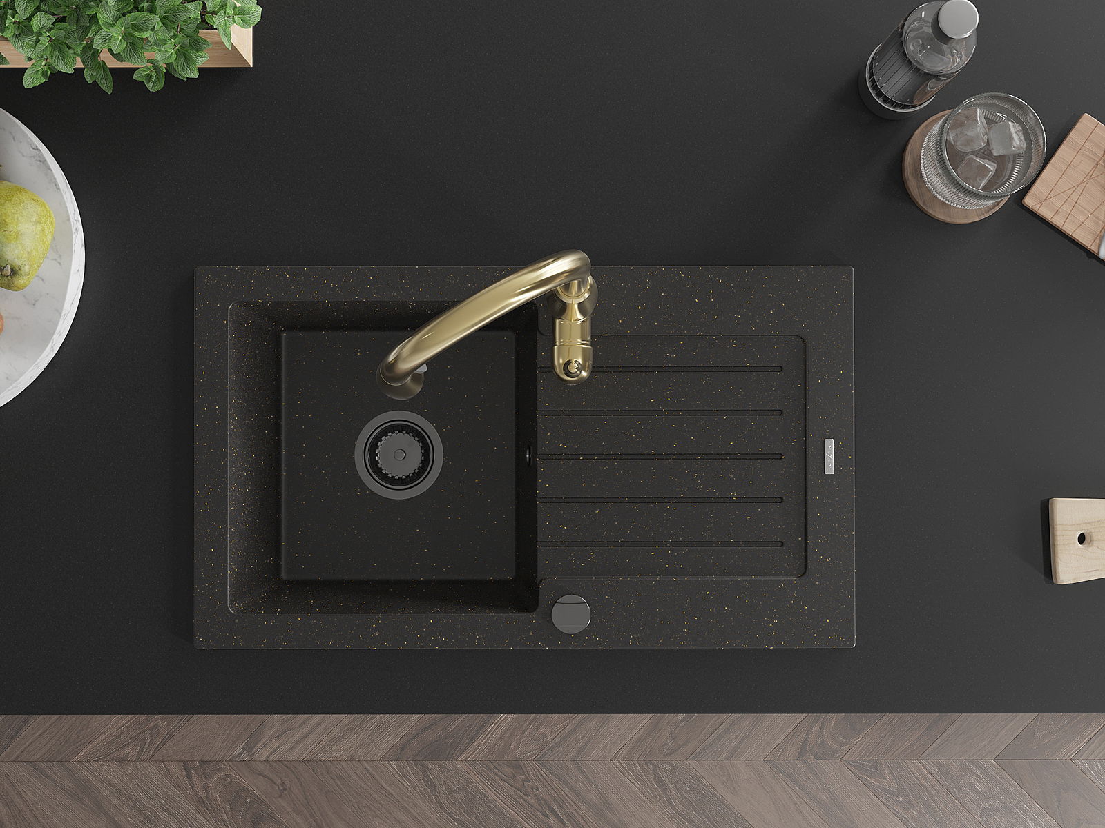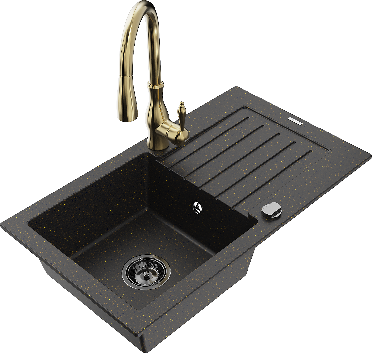 Mexen Pablo гранитна мивка с 1 камера с отцедник и кухненски смесител Savita,