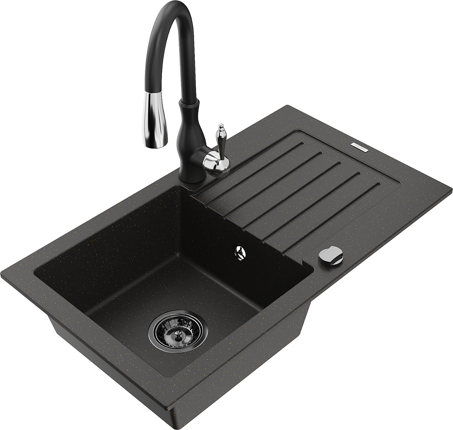 Mexen Pablo гранитна мивка с 1 камера с отцедник и кухненски смесител Savita,