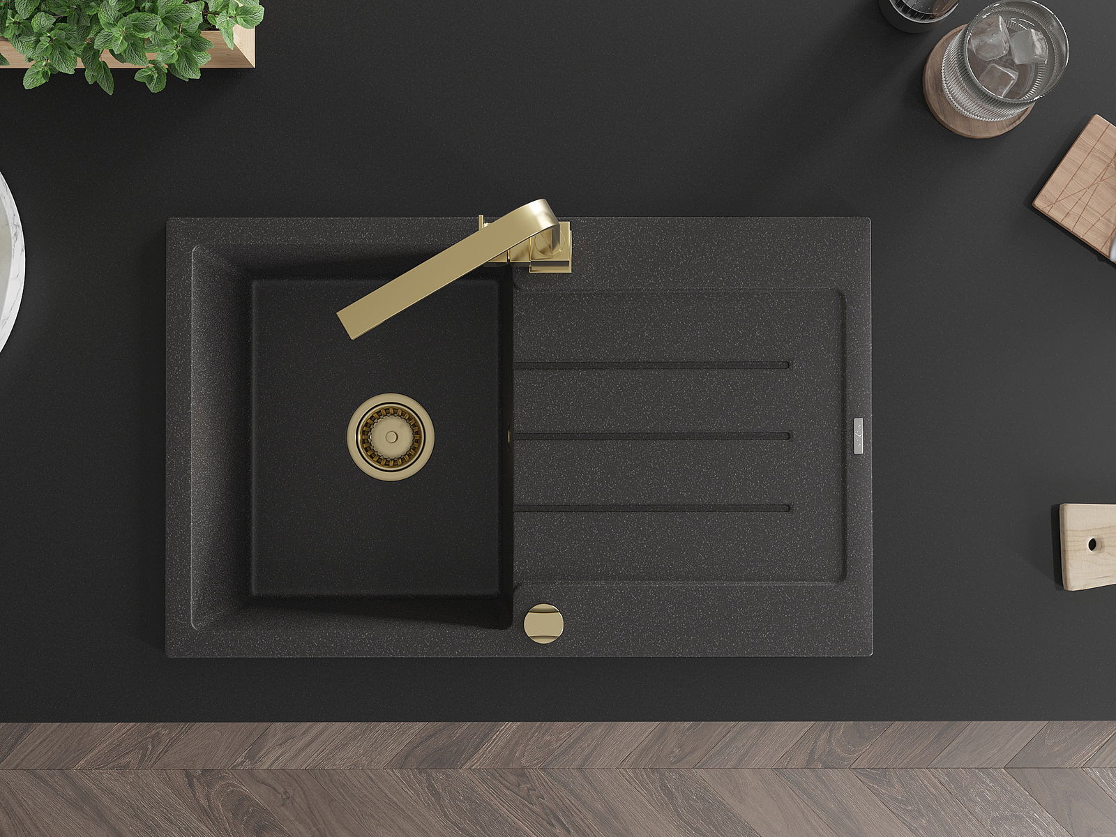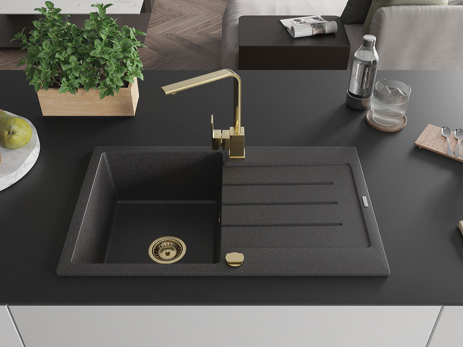 Мивката е направена от висококачествен гранит. Това е елегантно и най -вече практично допълнение към всяка кухня, независимо от нейния стил. Висококачествената и гранитна издръжливост осигуряват много години употреба.
