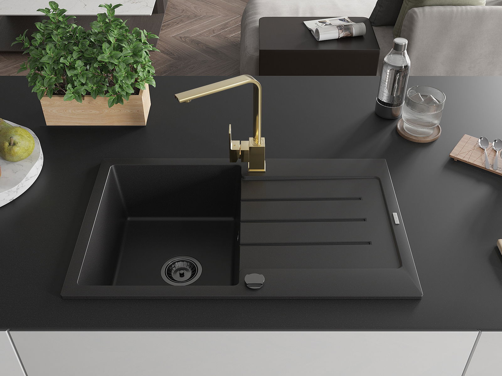 Мивката е направена от висококачествен гранит. Това е елегантно и най -вече практично допълнение към всяка кухня, независимо от нейния стил. Висококачествената и гранитна издръжливост осигуряват много години употреба.