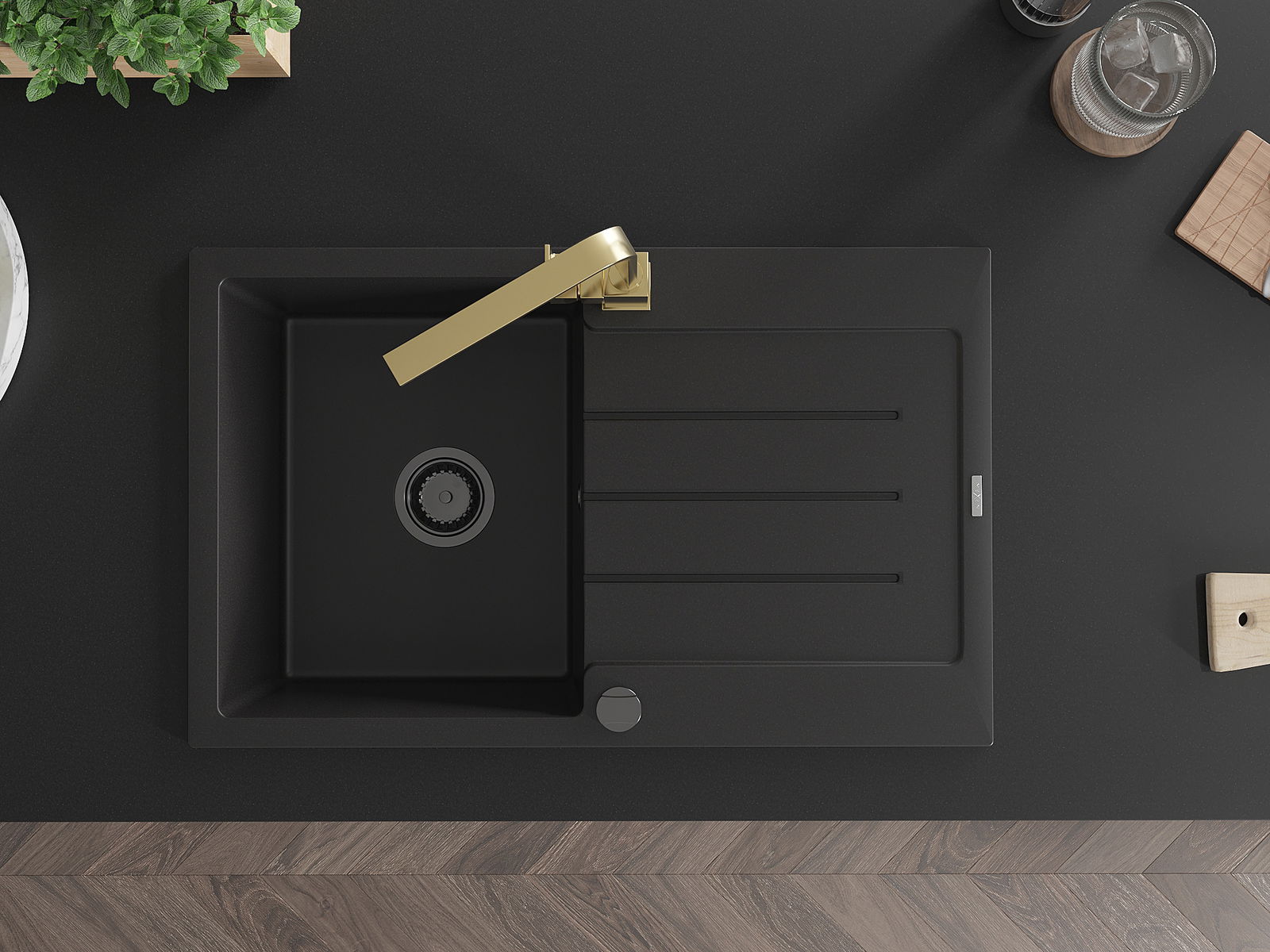 Mexen Bruno гранитна мивка с 1 отделение и отцедник и кухненски смесител Rita, черен - 6513-77-670300-50-B