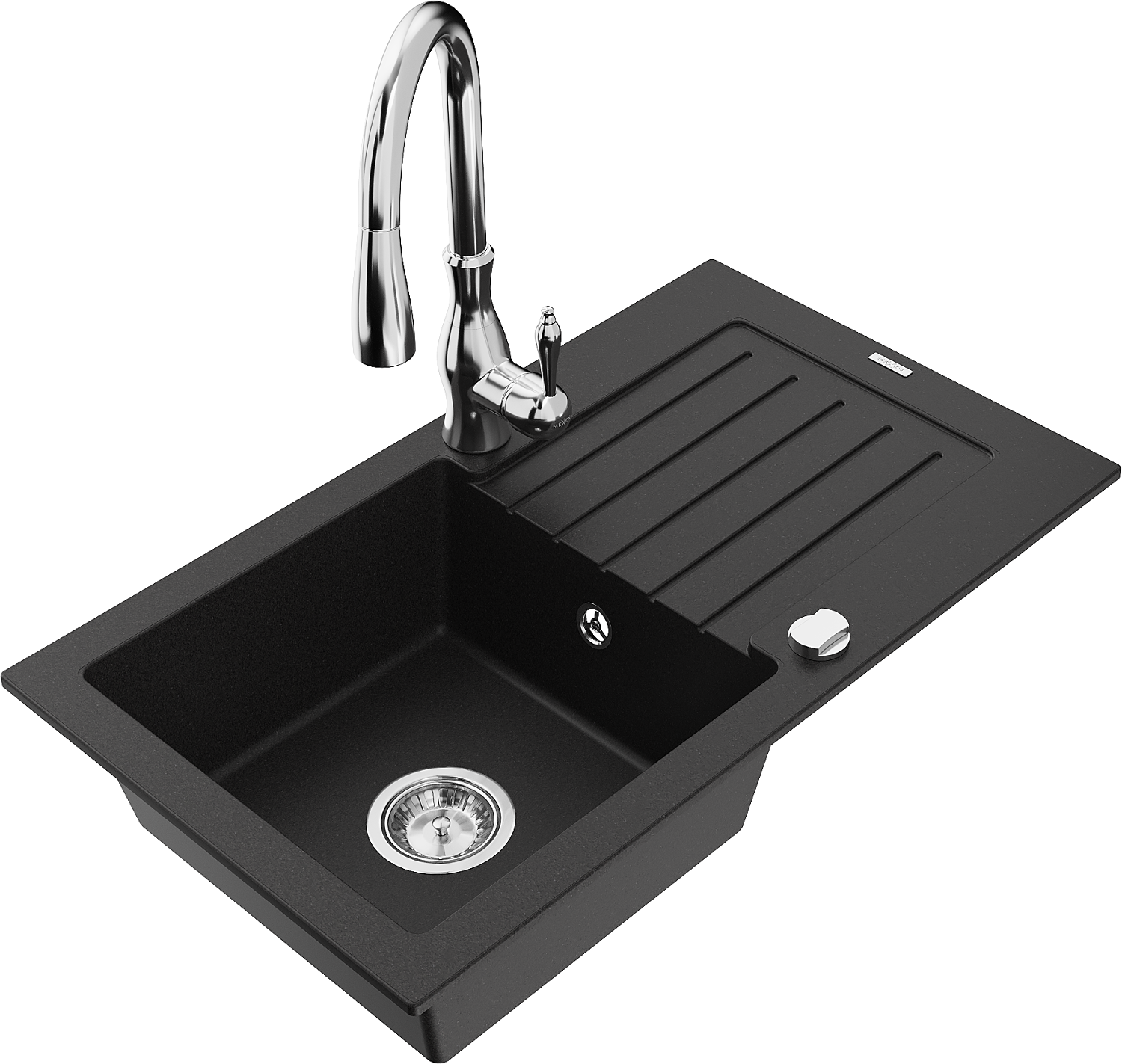 Mexen Pablo гранитна мивка с една камера с отцедник и кухненски кран Savita, черен - 6510-77-672601-00