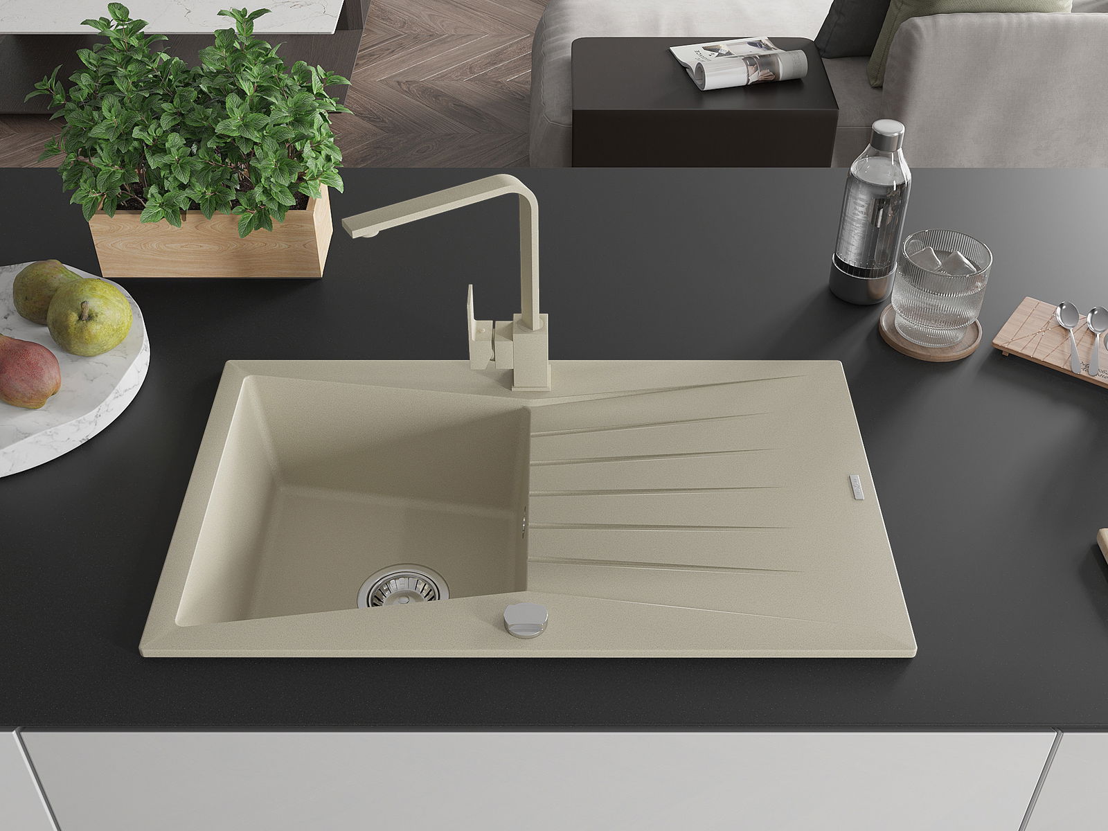Mexen Cesar гранитна мивка с 1 корито и отцедник и кухненски смесител Rita, бежов - 6514-69-670300-69