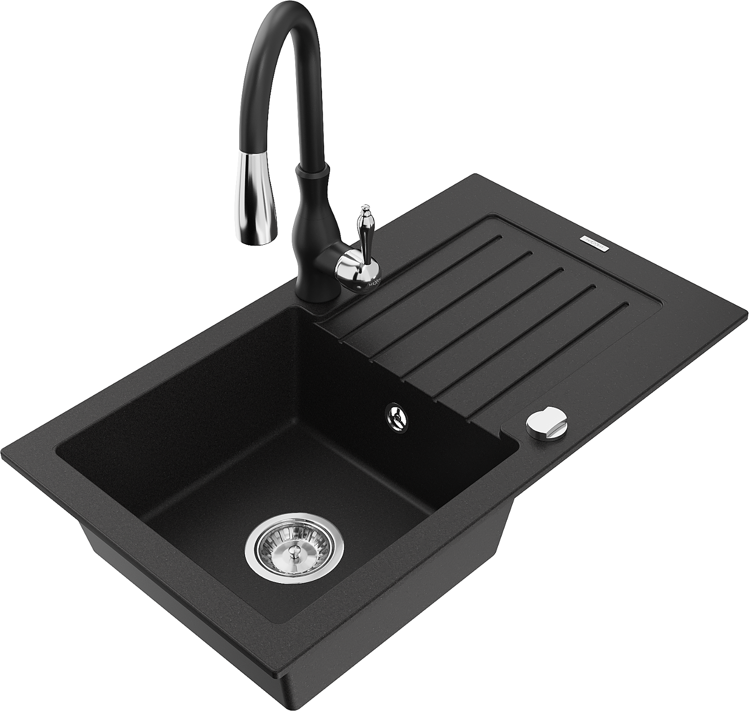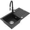 Mexen Pablo гранитна мивка с една камера с отцедник и кухненски смесител Savita, черен - 6510-77-672601-70