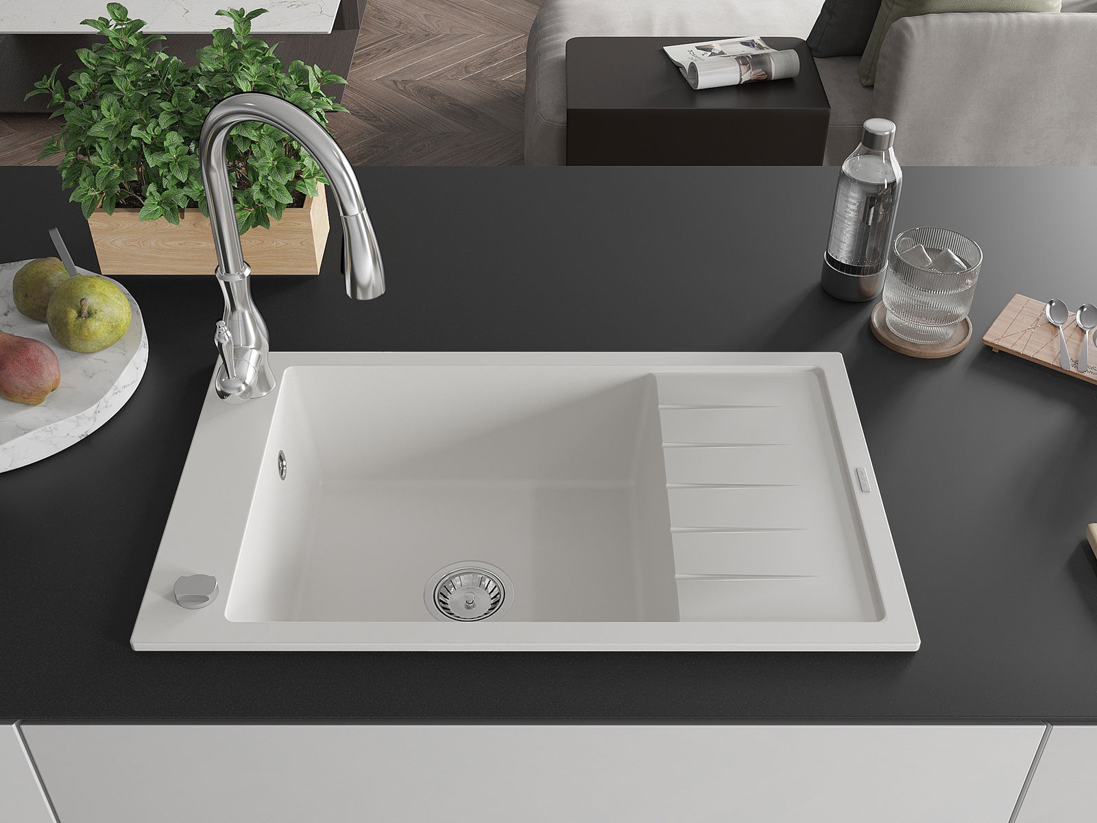 Повърхността на мивката е устойчива на петна и обезцветяване, благодарение на които е лесно да се почиства и запазва цвета си за дълго време. Естетически и практически допълващи всяка кухня.