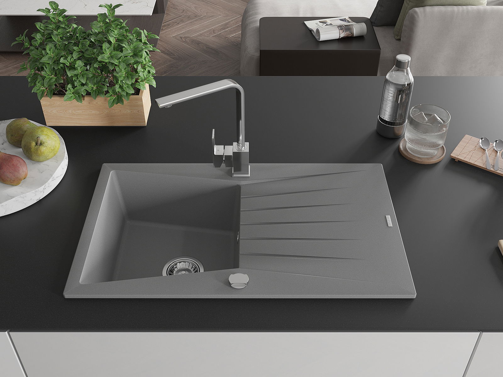 Мивката е направена от висококачествен гранит. Това е елегантно и най -вече практично допълнение към всяка кухня, независимо от нейния стил. Висококачествената и гранитна издръжливост осигуряват много години употреба.