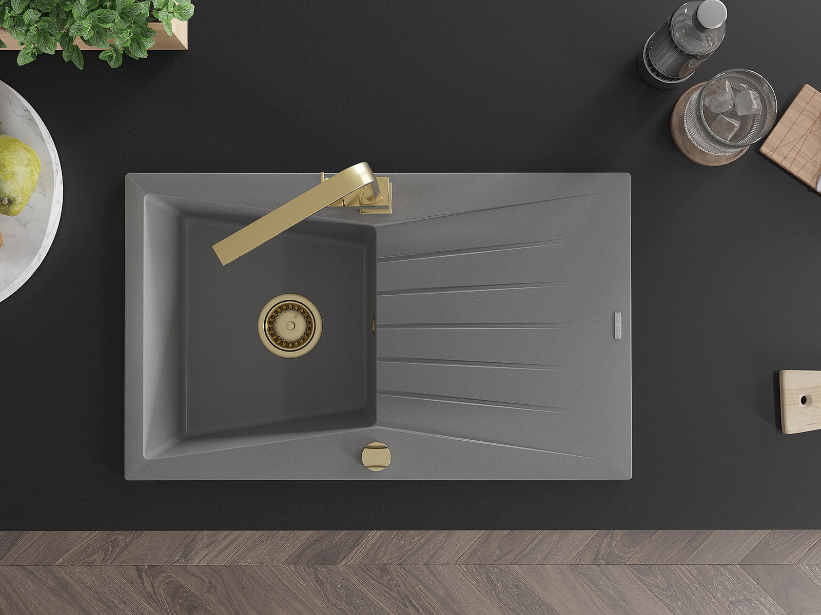 Mexen Cesar гранитна мивка с една камера със сушилня и кухненски смесител Rita, сив - 6514-71-670300-50