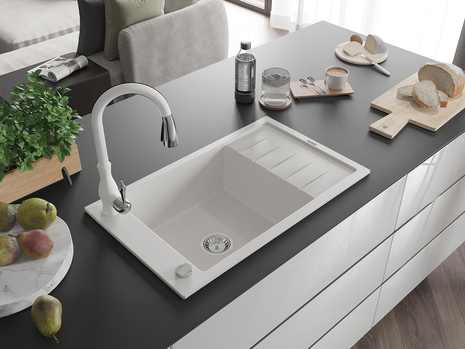 Повърхността на мивката е устойчива на петна и обезцветяване, благодарение на които е лесно да се почиства и запазва цвета си за дълго време. Естетически и практически допълващи всяка кухня.