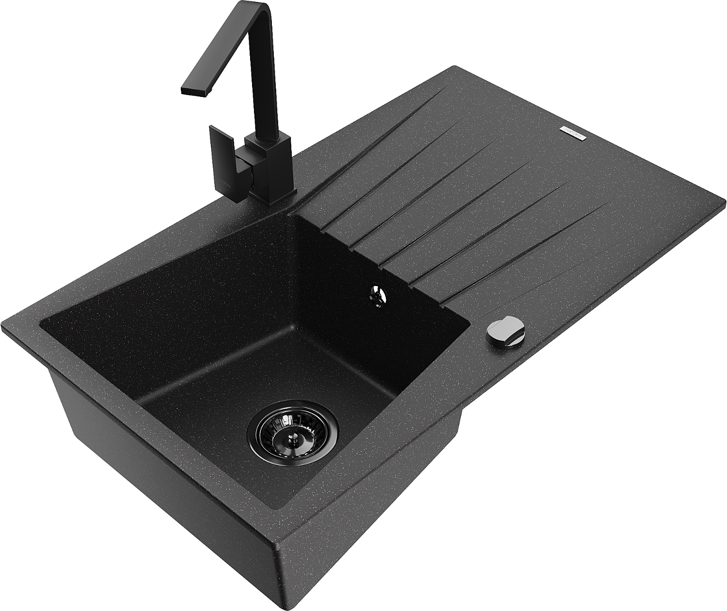 Mexen Cesar еднокоморен гранитен мивка с дренаж и кухненски смесител Rita, черен/сребрист металик - 6514-73-670300-70-B