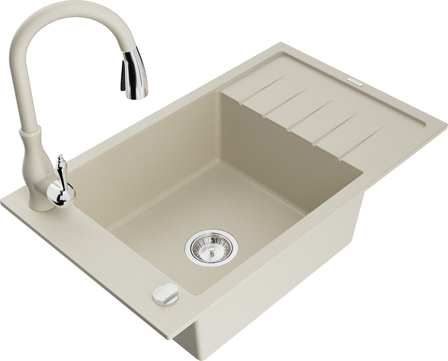 Mexen Elias мивка от гранит, 1-камерна с отцедник и кухненска батерия Savita, бежова - 6511-69-672601-69